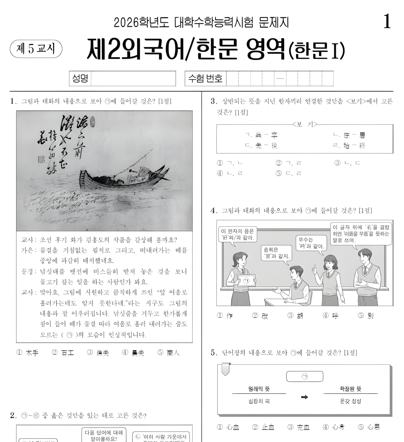 한문공부보다 눈치공부를 하게 하는 1번 문항은 문제 유형을 개선할 필요가 있다.