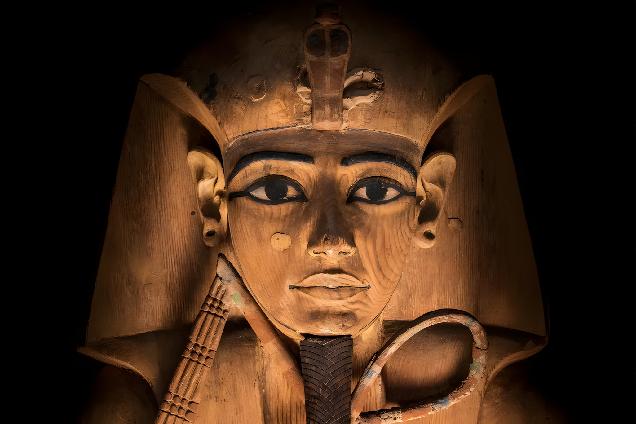 이 관에는 파라오가 사후 세계 신인 오시리스 모습으로 묘사된다.