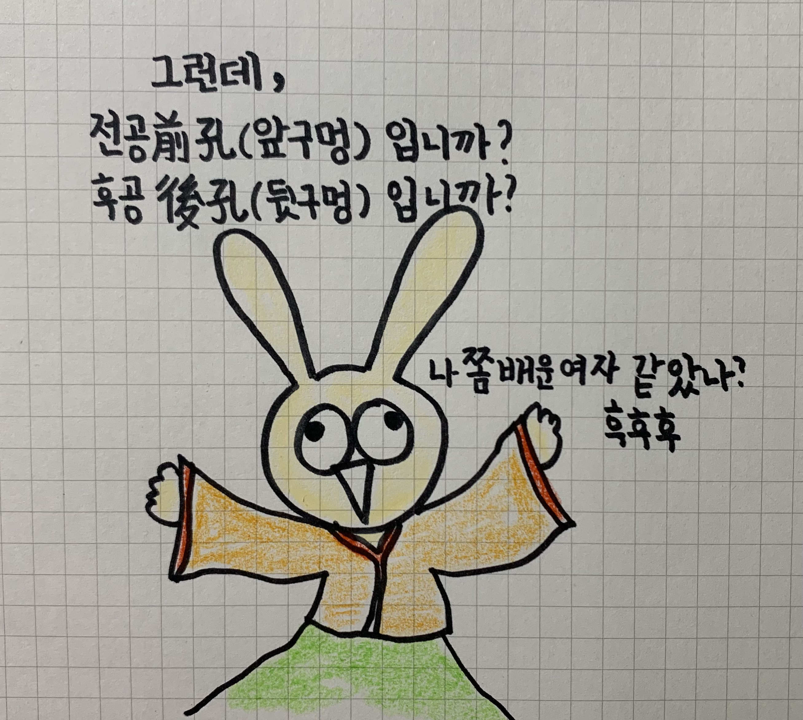 “전공前孔(앞구멍)입니까? 후공後孔(뒷구멍)입니까?”(前孔耶 後孔耶)