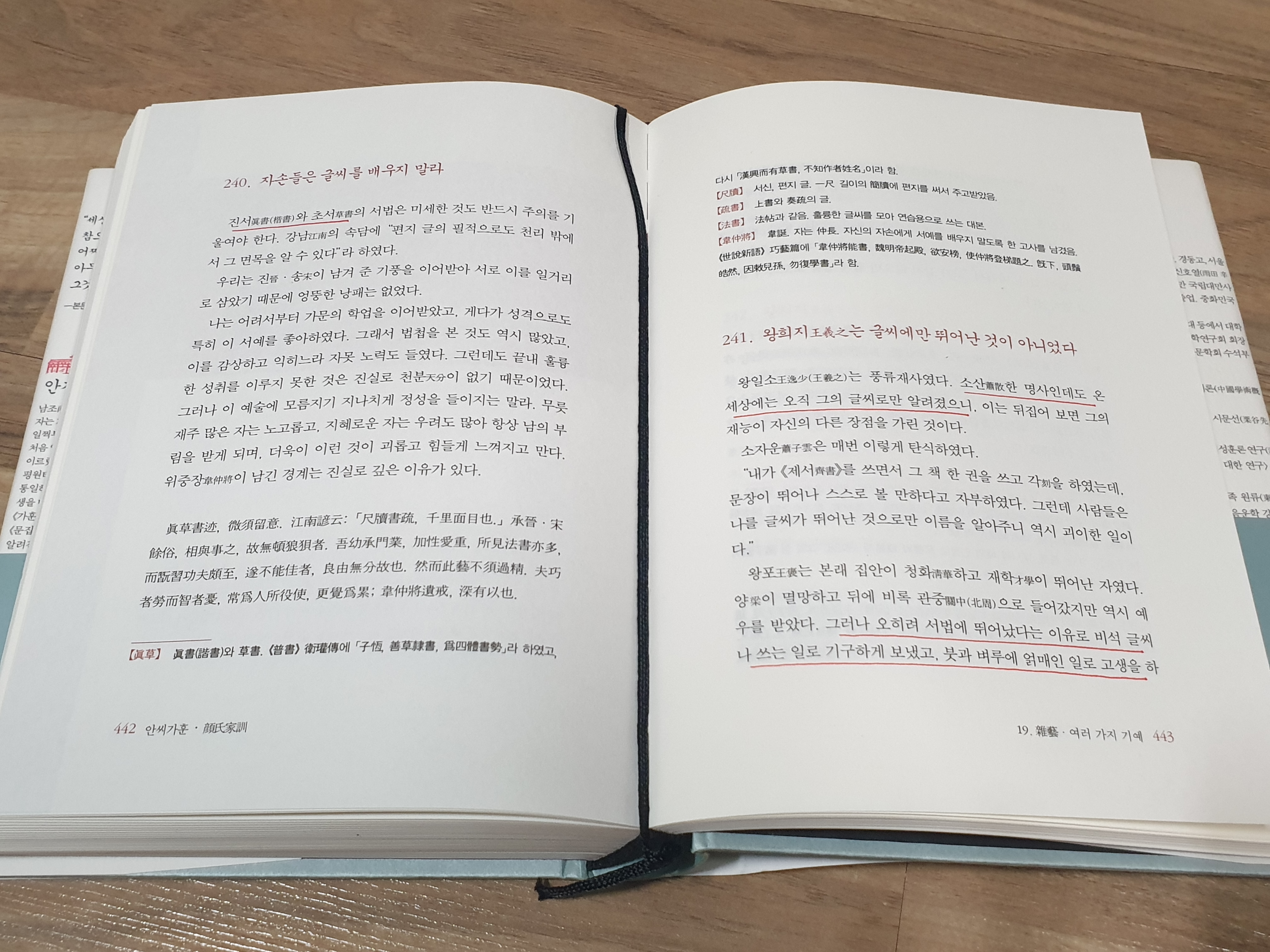 여러 번 말했듯이 난 《안씨가훈顔氏家訓》을 혹닉한다 할 정도로 무척이나 좋아한다. 그래서 집구석에는 저 번역본으로 국내본 네 종류, 일본어 역본 1종류, 그리고 중국 본토에서 나온 주석본이나 교감본 여러 종을 구비했다.