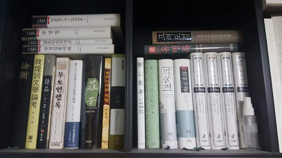자주 이용한다 해서 혹은 책이나 논문 쓸 때 요긴하다 해서 서재 숙직실에 가까이 꽂아둔 책 일부다. 보다시피 난 잡탕이다.
