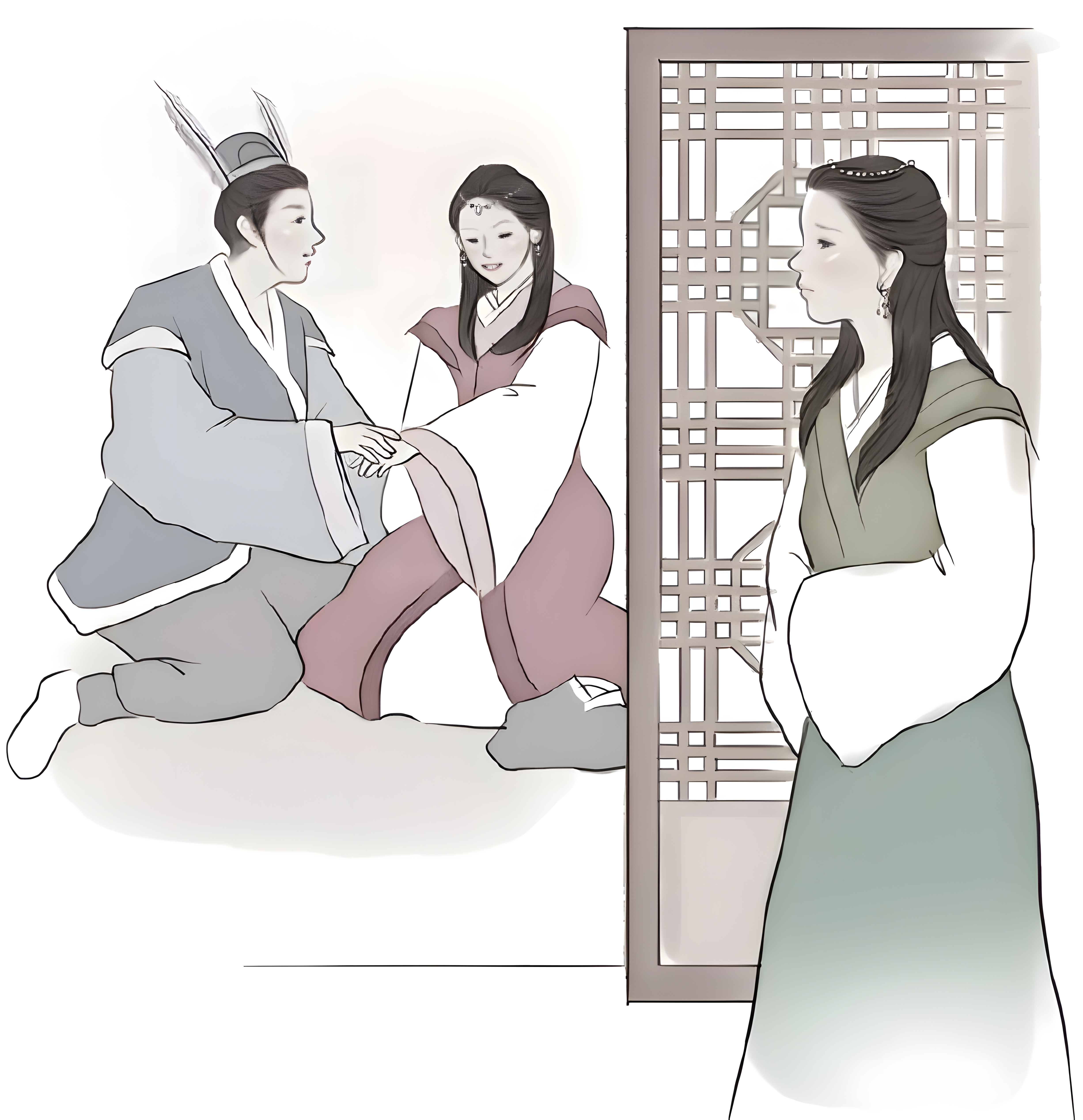 하지만 언니가 일이 있어 나오지 못하였기에 동생이 나와서 옷고름을 꿰매어 주었는데, 그녀의 담백한 화장과 산뜻한 옷차림과 빛나는 아름다움이 눈부실 지경이었다.