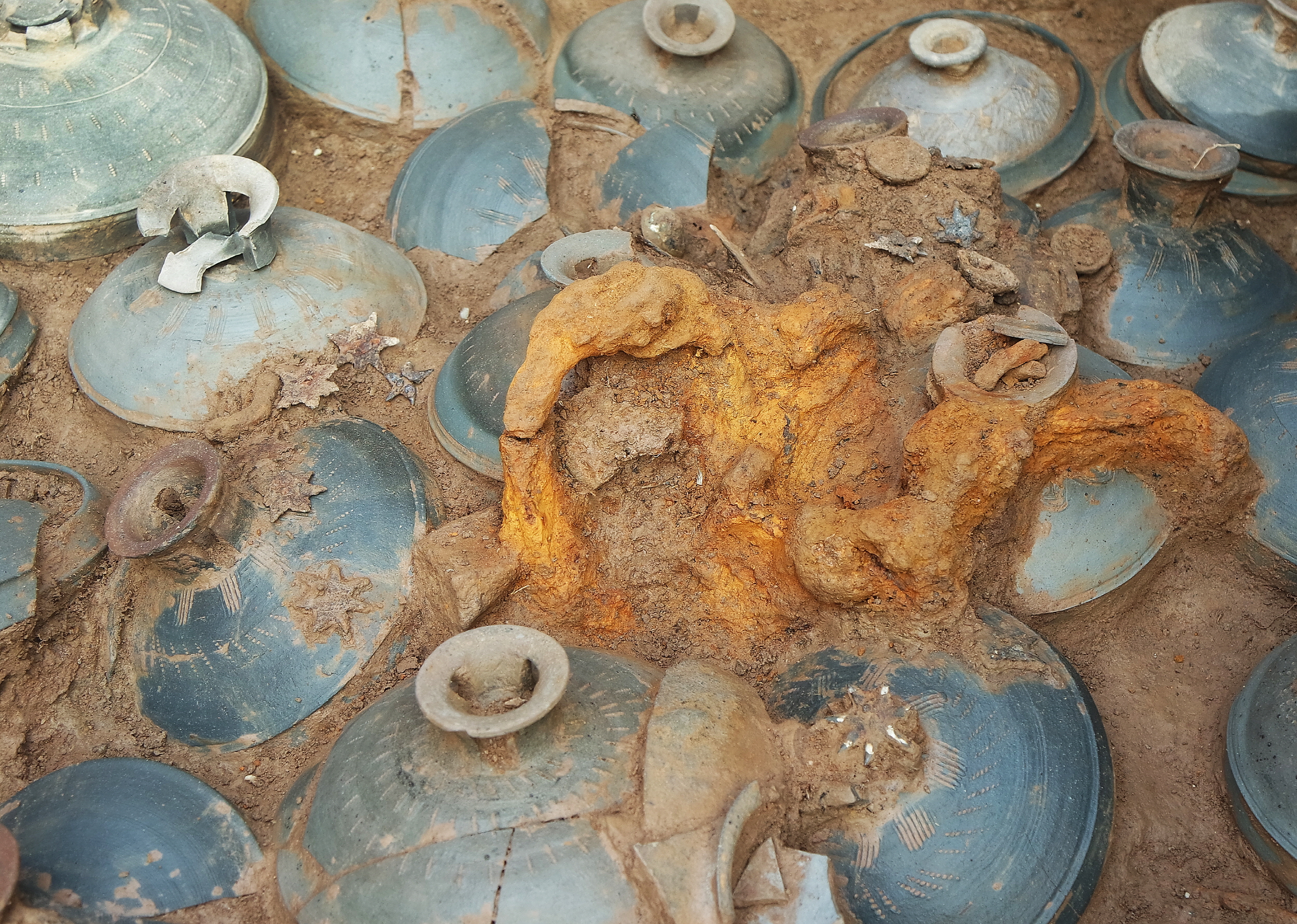 盜掘されていない完全な古墳で多くの副葬品がそのまま出土!