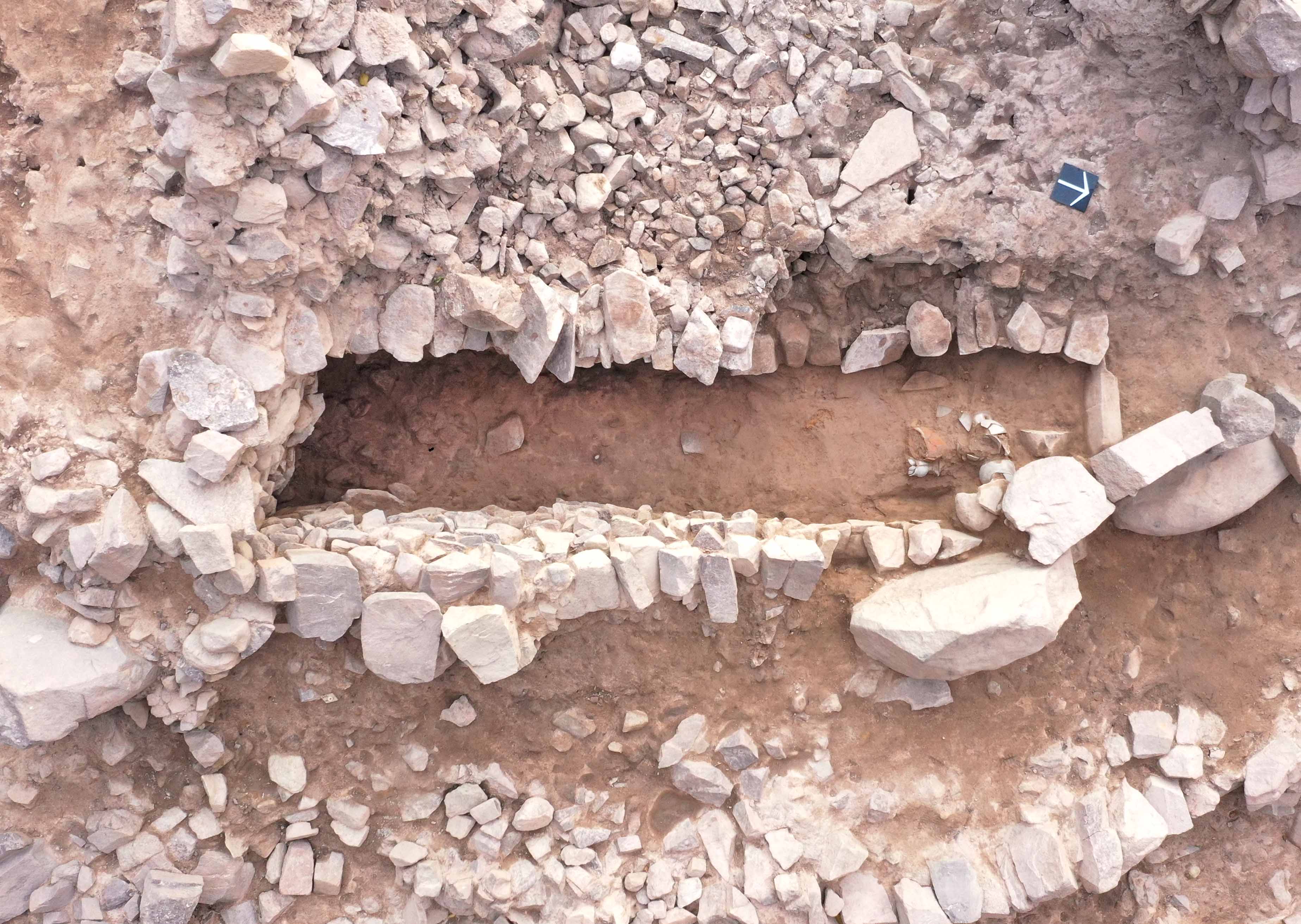 • 封土内部には石築の形態の區劃石列が11個所で確認、區劃列は本墳の主槨北長壁の中央部を中心に放射狀に構築。石列は、主に行の形で片側を合わせたし、本墳の密封土上面から構築される。最大殘存高1.7m。