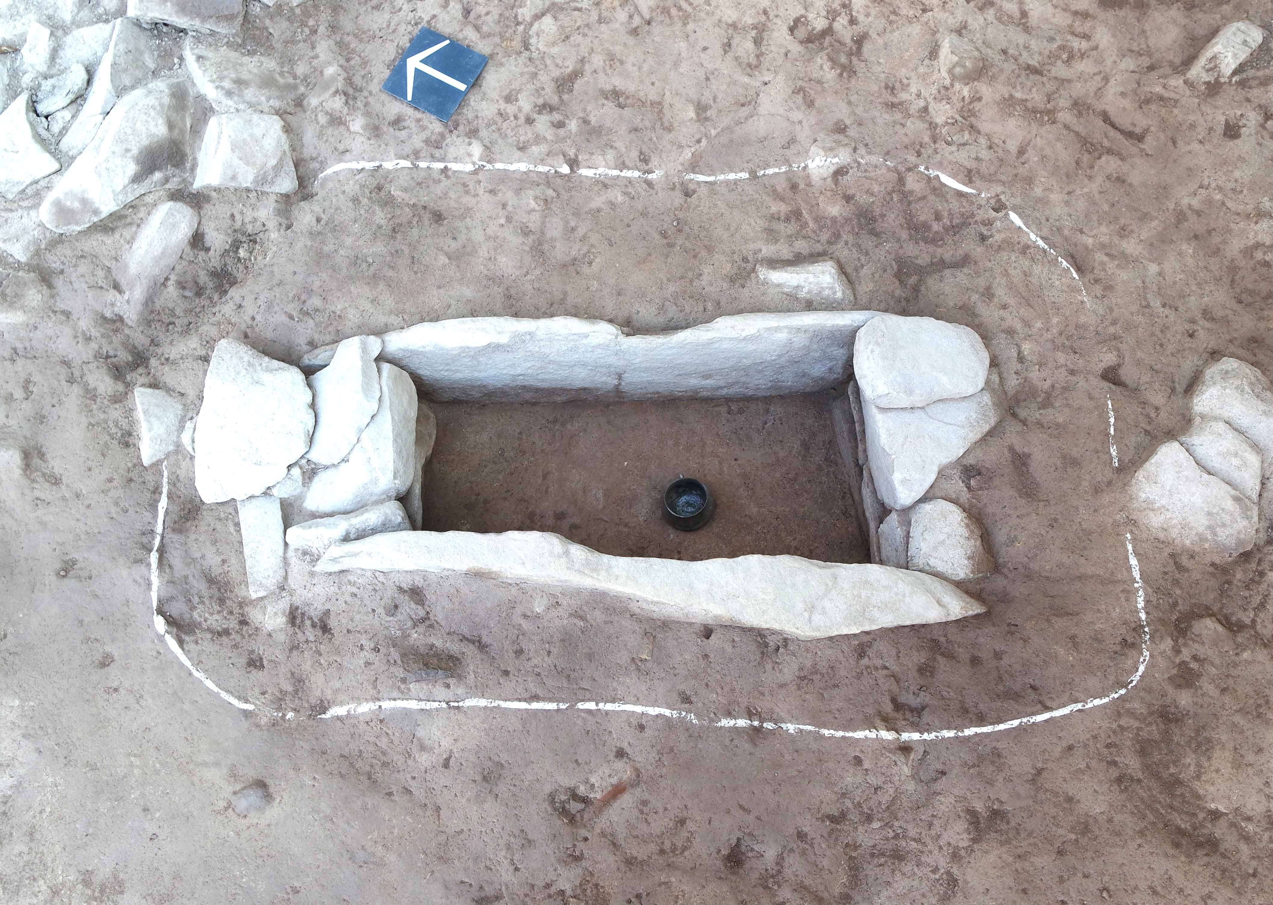 • 副葬石槨は内部の長さ4.3m、幅0.8m、高さ1.1m。壁石はすべて割石を使用して築造。内部の中央には、被葬者の人骨痕が部分的に確認されるが、頭蓋骨の痕跡から見て頭向は西に判断した。遺物は兩端副葬。西は、主に高杯類を副葬したのに対し、東は大小型の瓶を副葬。