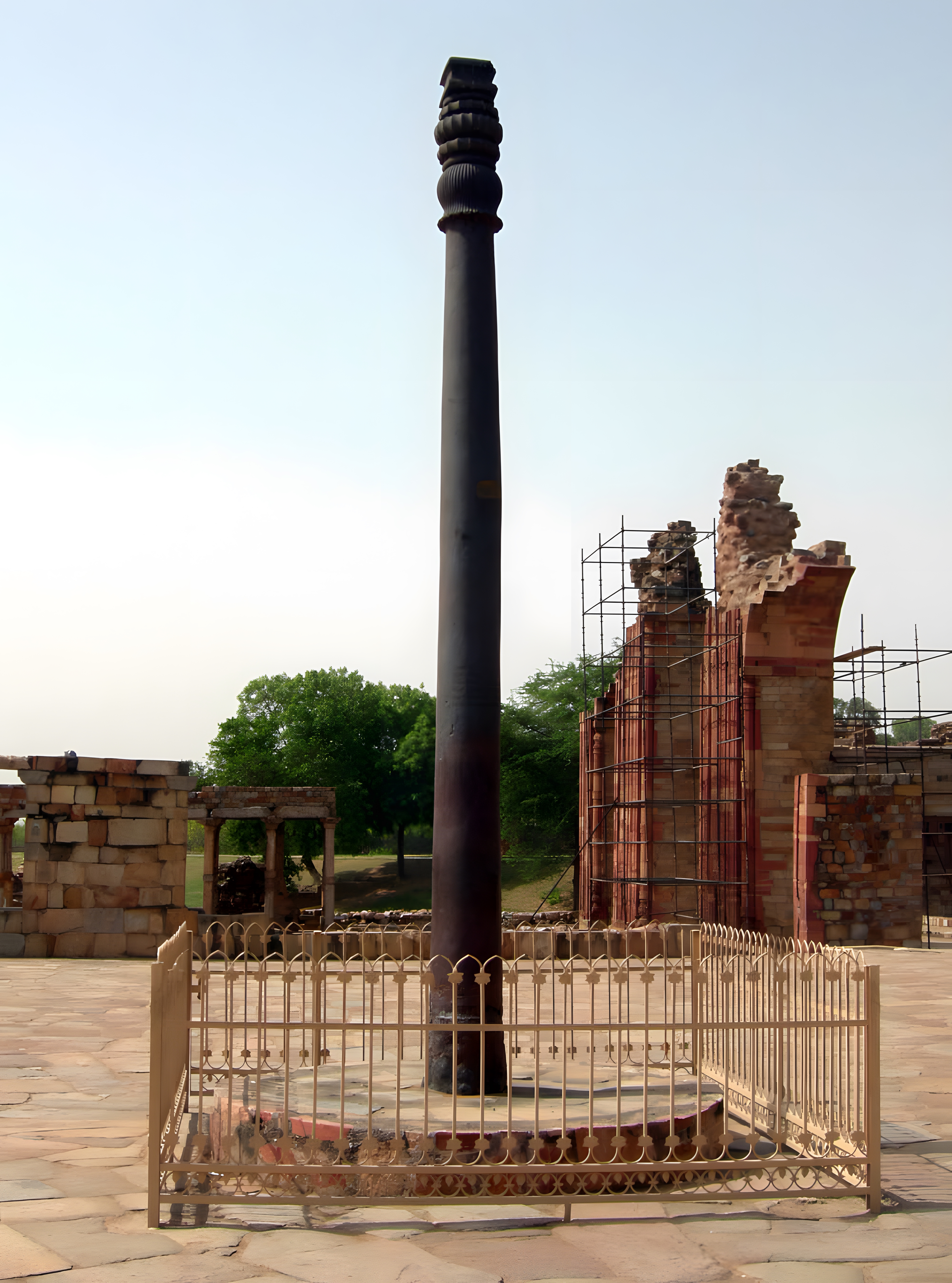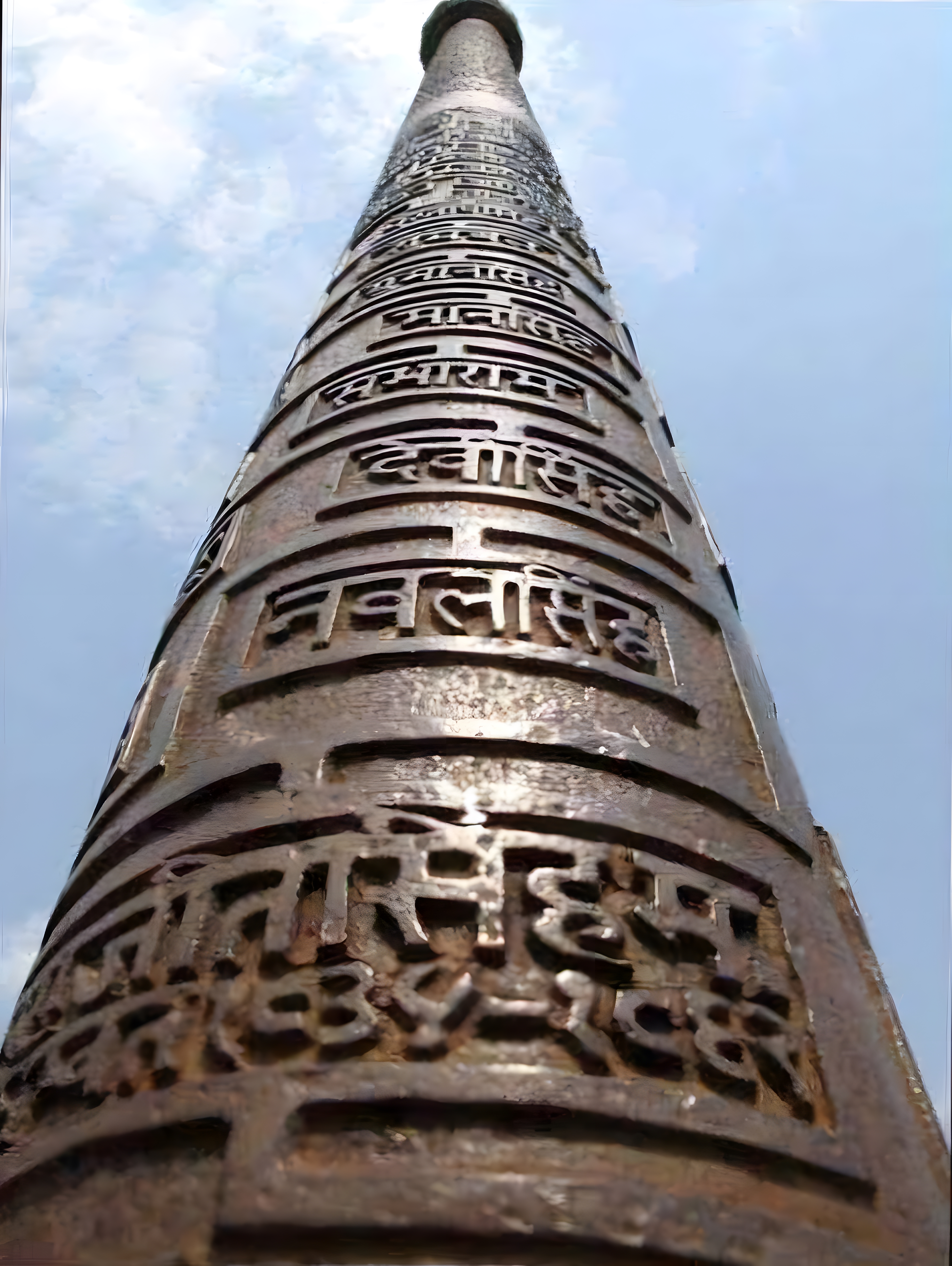 흔히 델리의 철기둥 Iron pillar of Delhi 이라는 별칭으로 일컫는 이 쇠기둥은 찬드라굽타 비크라마디티야 Chandragupta Vikramaditya 2세(재위 서기 375~415년 무렵),가 만들어 세운 것으로, 놀랍게도 저 상태로 1600년을 버팅기며 질긴 생명을 자랑한다.