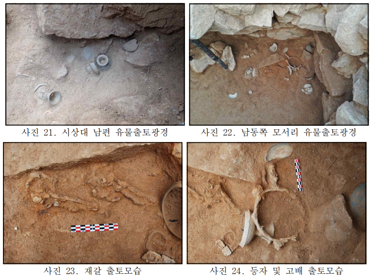 단각고배와 이단투창고배는 출토 위치가 각각 석실 서장벽 중앙부와 남단벽 양쪽 모서리로 다르다. 이는 추가장 흔적으로 보이며, 시기적 차이를 보이는 것으로 판단한다.