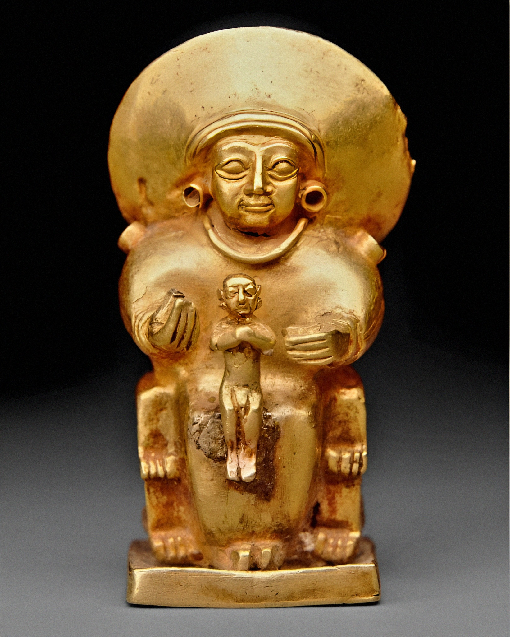 로스트왁스 공정 lost-wax process [이 공정은 또 뭔가??] 을 통해 금으로 주조한 저 인물은 긴 가운을 입고 앉아 있는 여신 모습이다.