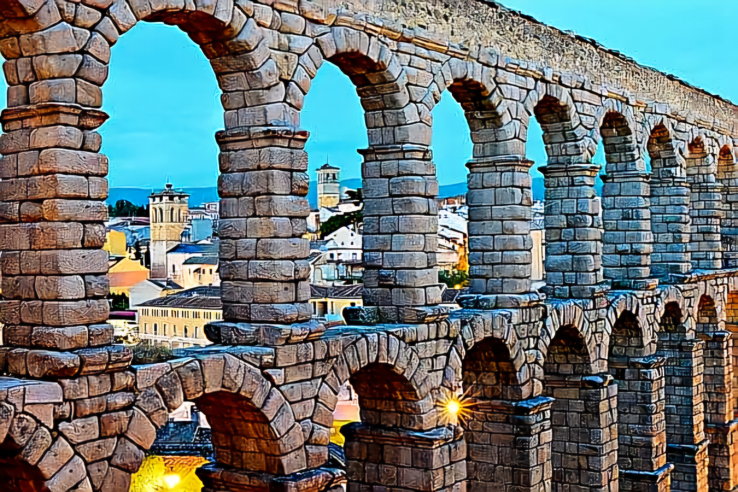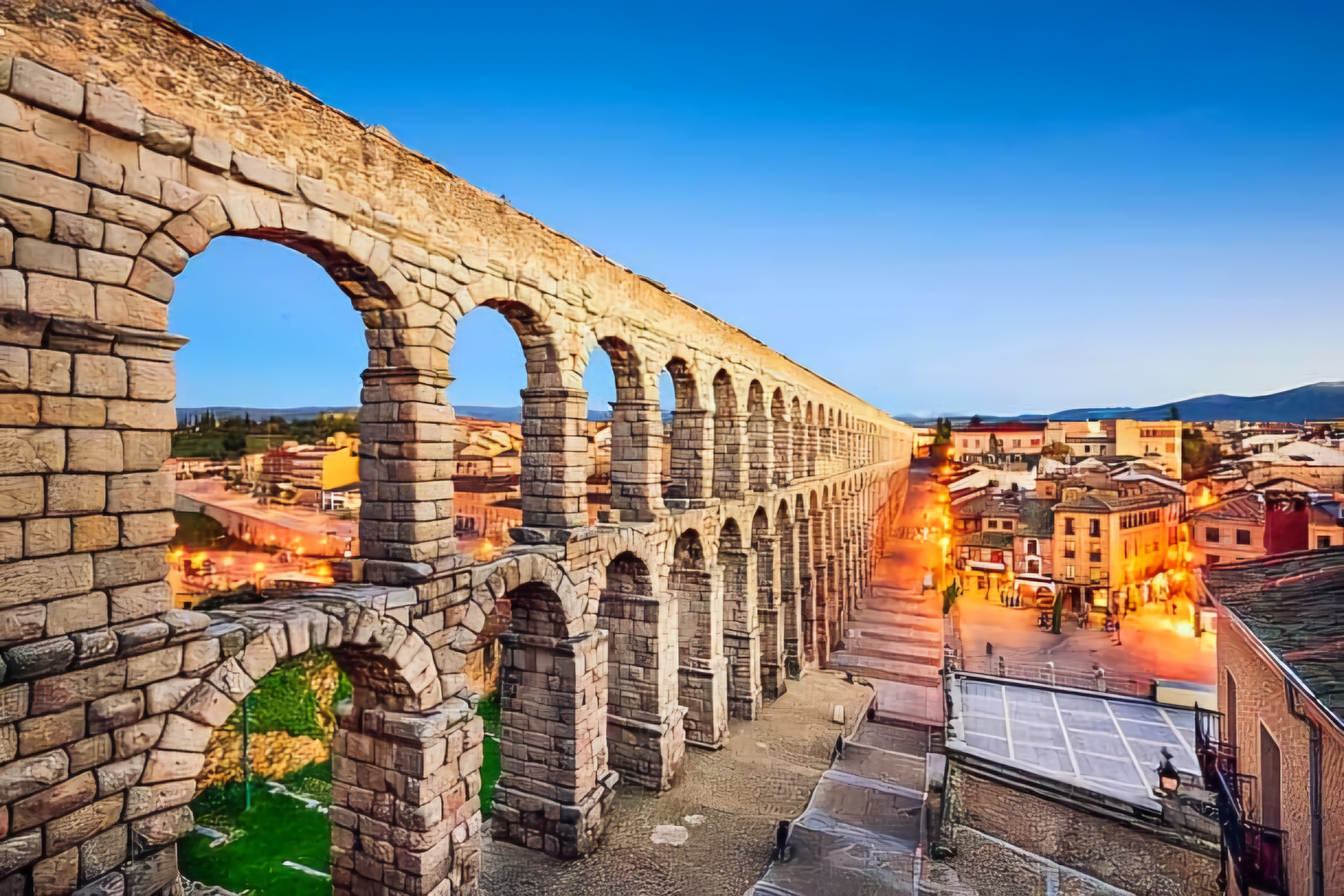 약 2,000년 된 세고비아 수로는 세계 여러 곳에서 관광객을 끌어들이는 명소로 기능한다.