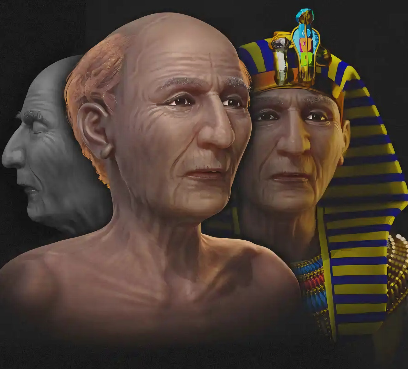 미라를 스캔했으니 젊은 파라오가 아니라 물경 66년이나 철권통치한 마지막 모습이다.