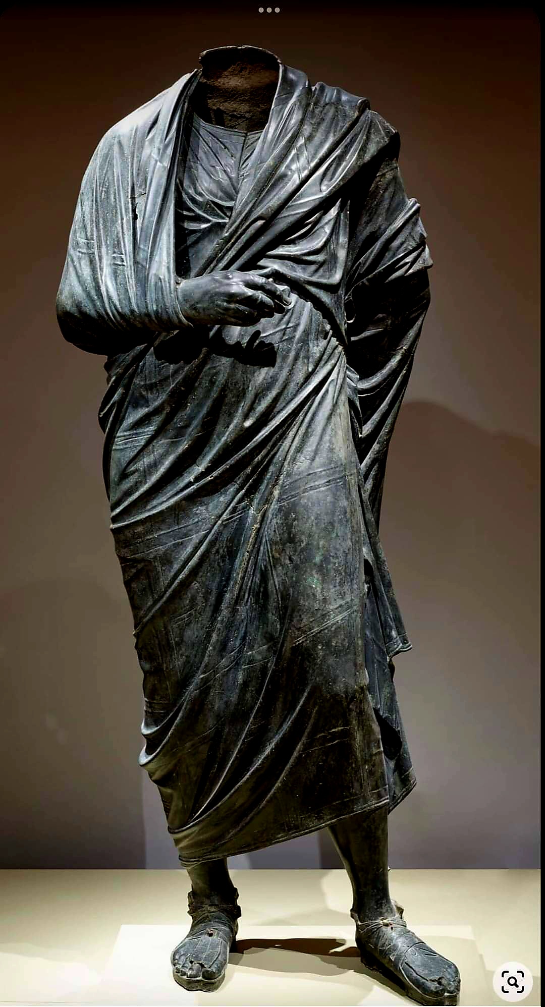클리블랜드 미술관 Cleveland Museum of Art's 홈페이지는 자신들이 소장한 이 조각상을 마르쿠스 아우렐리우스 Marcus Aurelius 를 묘사한 것으로 현재 터키의 고대 도시 부본 Bubon 에서 유래한 '옷을 느슨하게 걸친 남자 draped male figure' 로 소개한다.