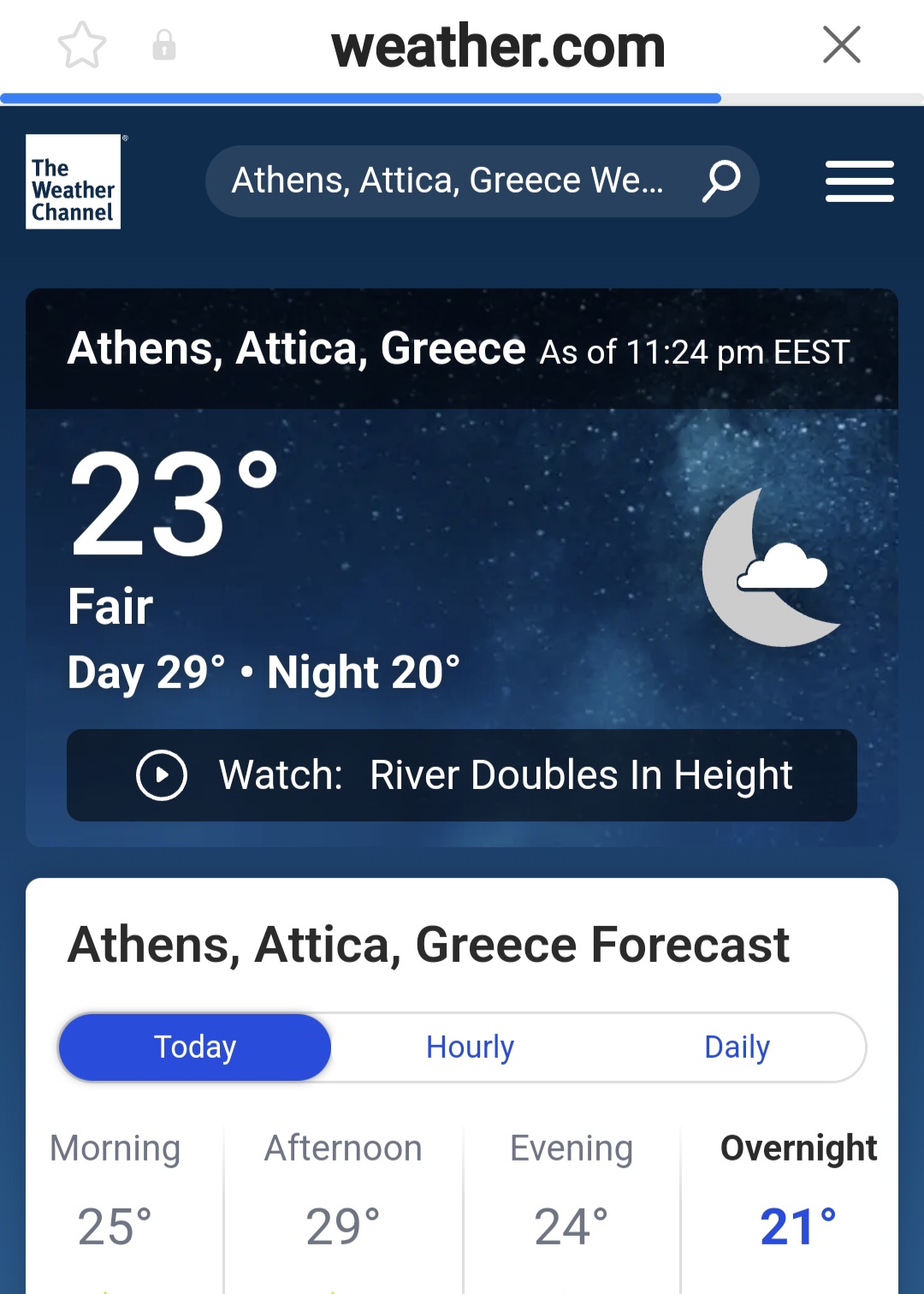 자정을 앞둔 아테네 현재 기온은 23도로 도착한 오늘 낮은 어땠는지 확인은 못했지만 30도를 넘었을 것이다.