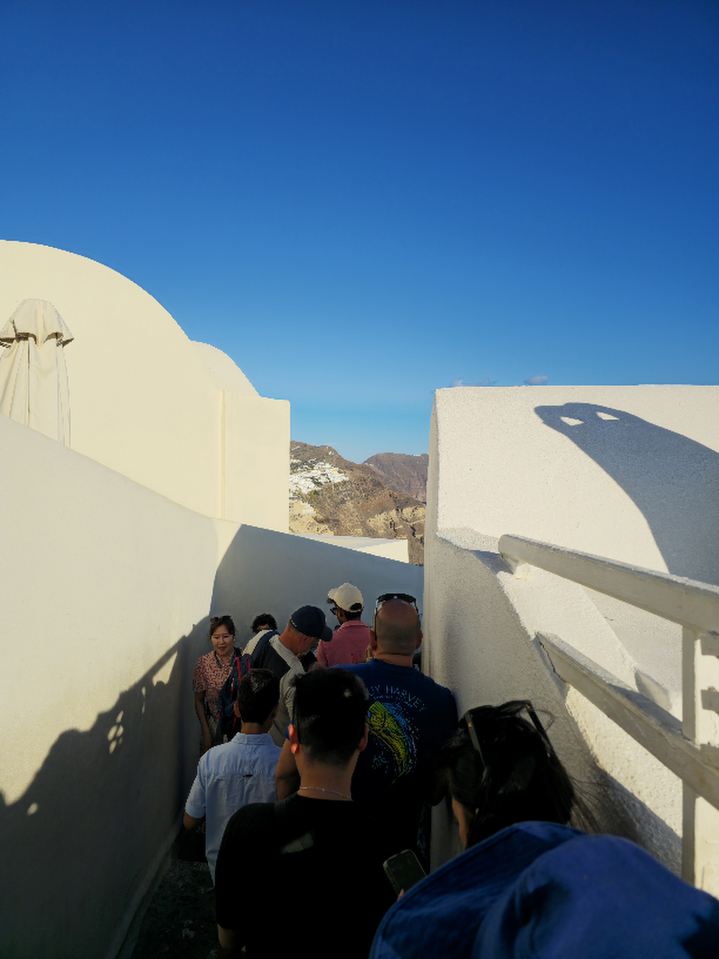 이 천애절벽에 벌집처럼 다닥다닥 아래위로 그리고 양쪽 옆으로 시멘트 건물들을 세우고선 온통 흰색 뺑끼칠을 쳐바르고 대신 위압성 있는 일부 돔 건물은 파란색 뺑끼칠을 했으니