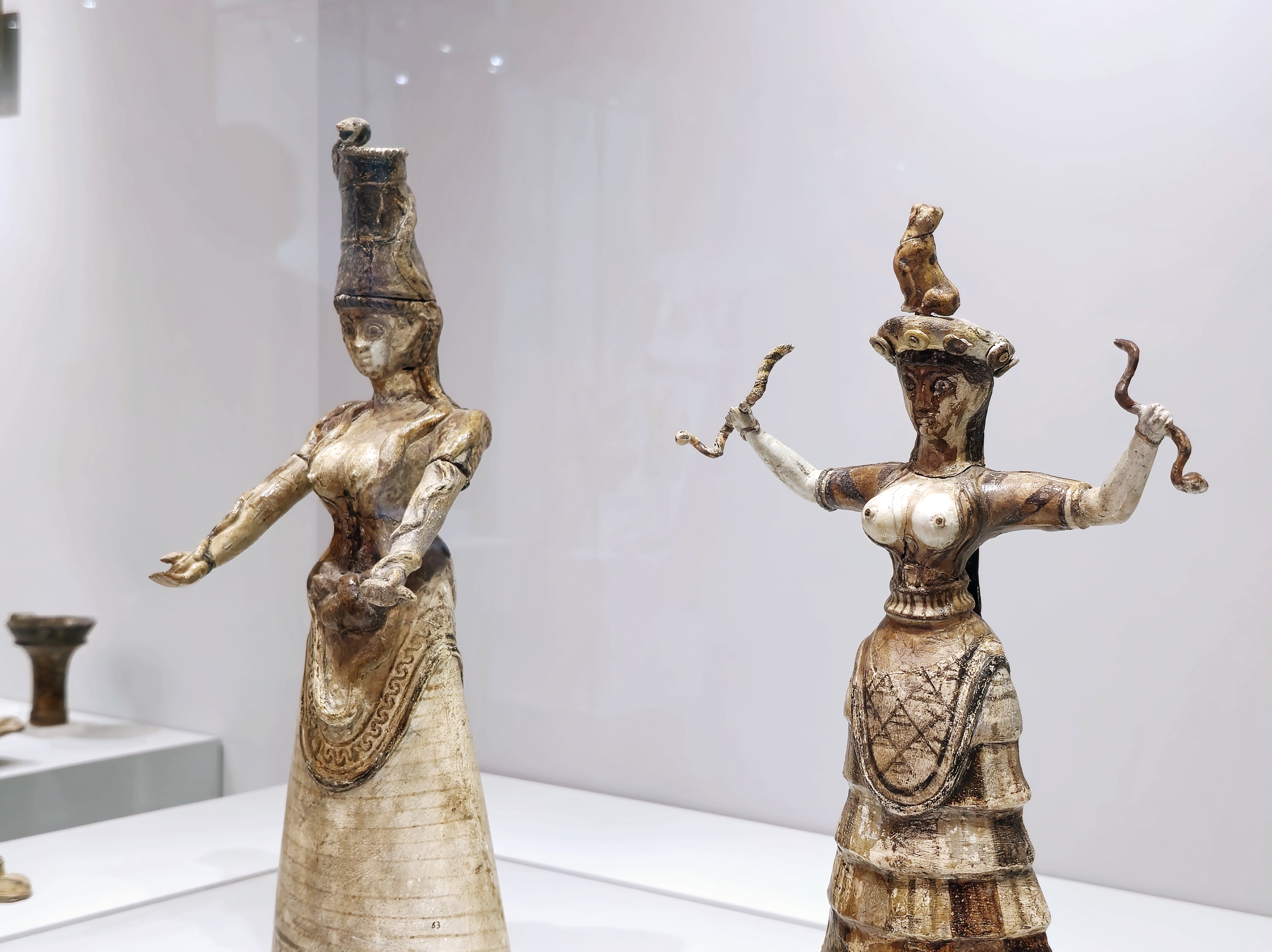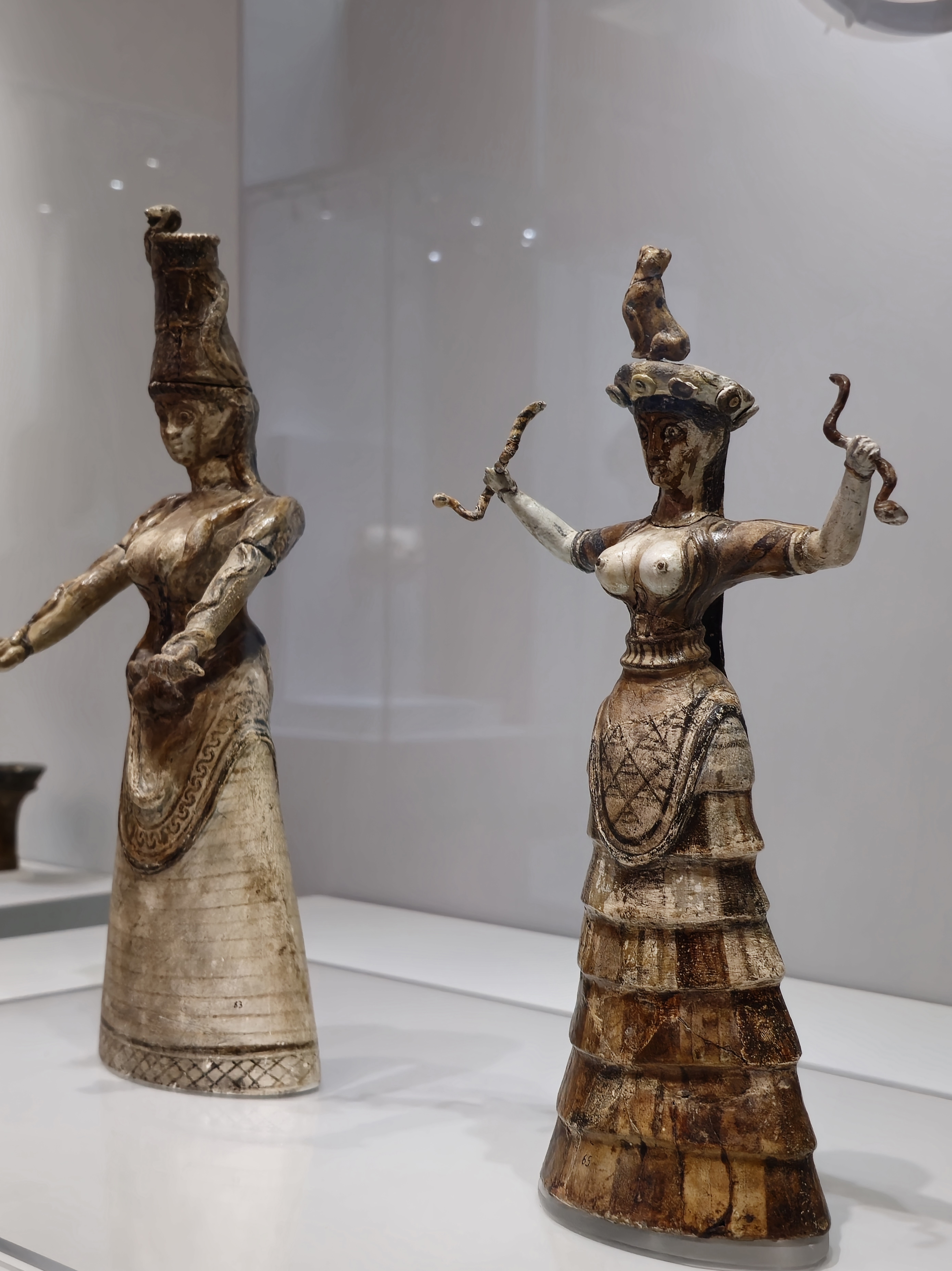 미노아문명을 대표하는 그리스 크레타섬 이라클리오 소재 크노소스 궁전 유적 출토품 중에서도 꽤 이름 있는 두 여인상이다.