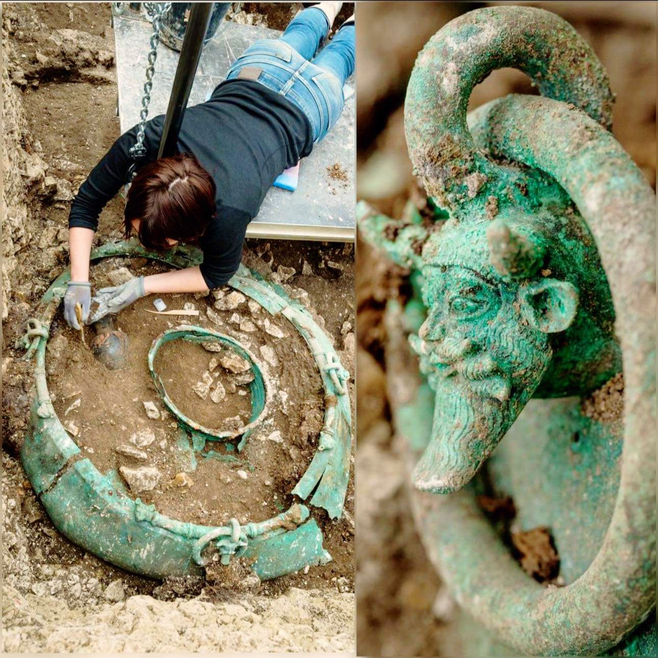 가장 주목할 만한 품목 중에는 뿔이 과장된 것으로 유명한 그리스 강신 river god 아켈루스Achelous 이미지로 장식한 5피트 너비 청동 가마솥이다.