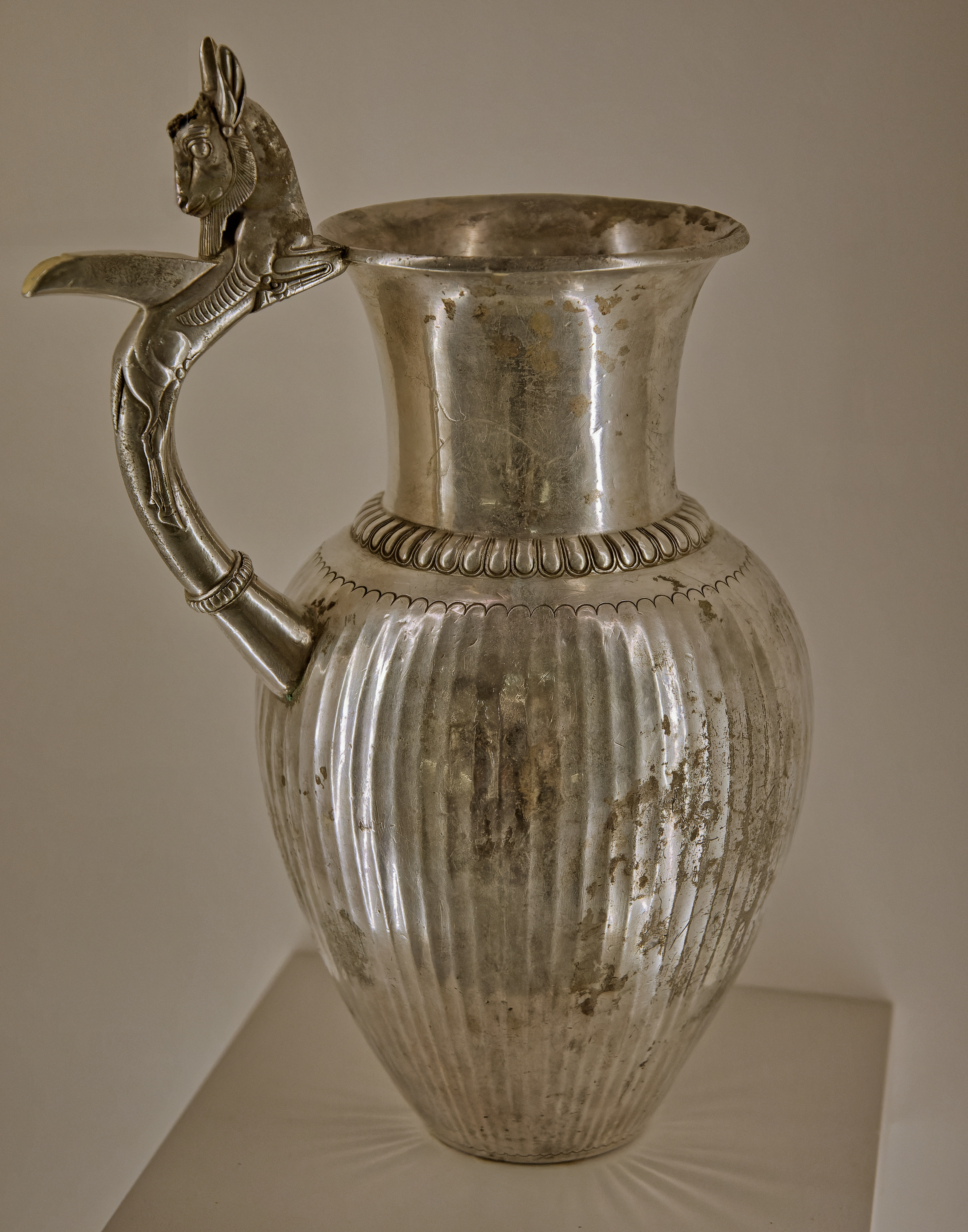 필리포프카 쿠르간Filippovka Kurgan 1호에서 발견된 기원전 5세기의 손잡이 두 개 달린 황금 항아리다.