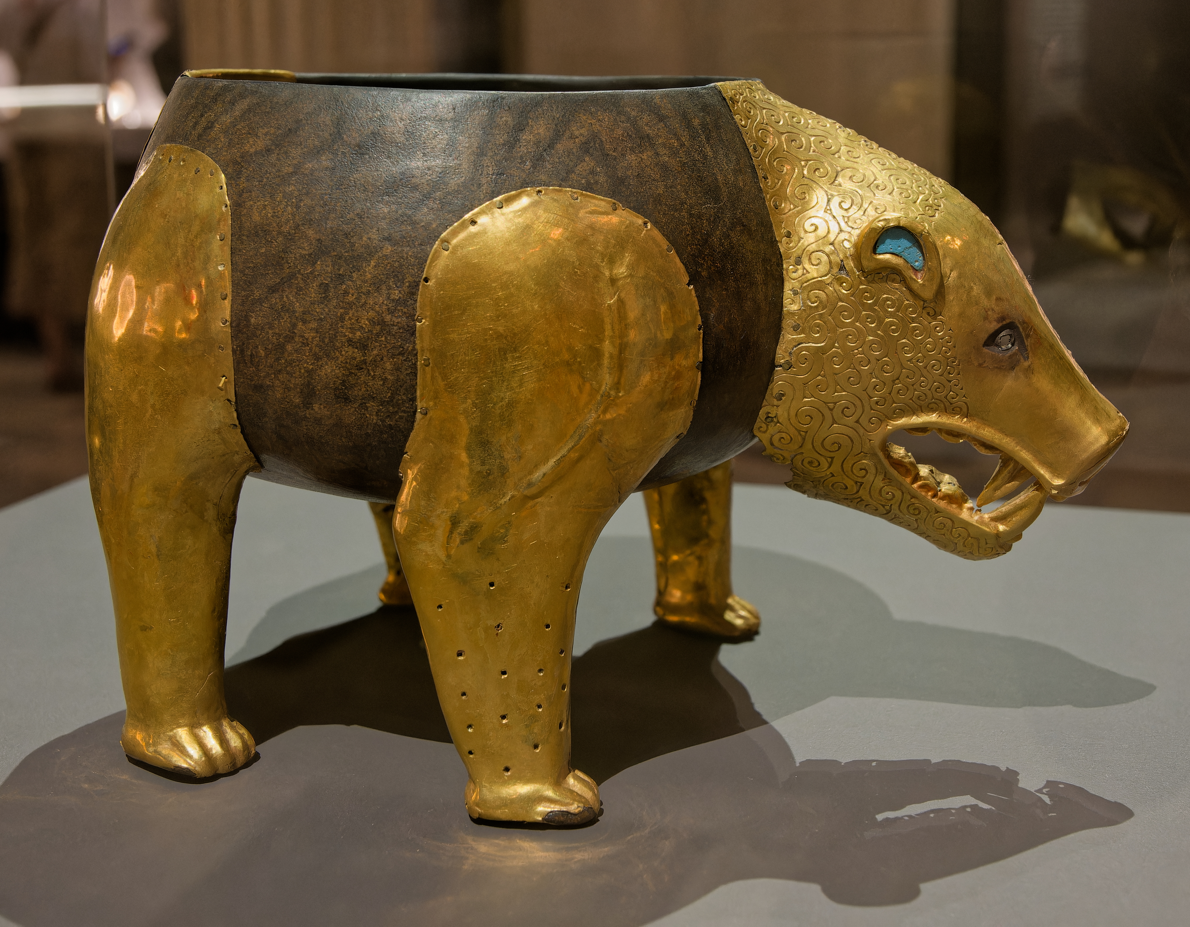 A golden jar with two handles from the 5th century BC, found in Filippovka Kurgan No. 1.