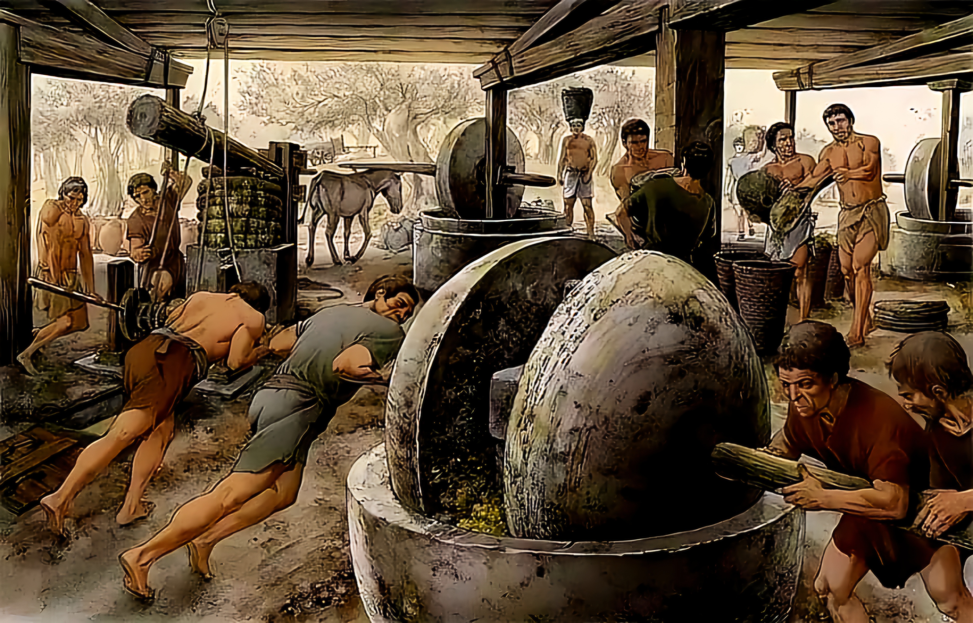 고대 로마에서 올리브 오일 생산은 페니키아인과 그리스인이 도입했지만, 대규모로 생산하여 모든 사회 계층이 소비하는 주식이 되었다.