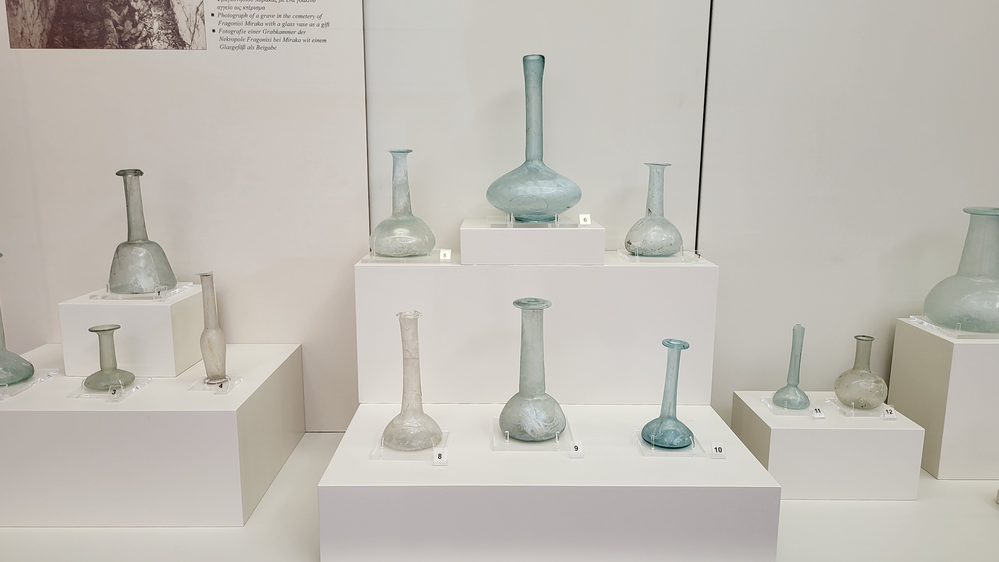 이 세부 전시 코너와 다음 두 코너에는 프라고니시 미라카 묘지 발굴에서 발견한 유리 그릇이 포함되어 있으며 이들은 무덤 껴묻거리grave-gifts로 안치되었다.