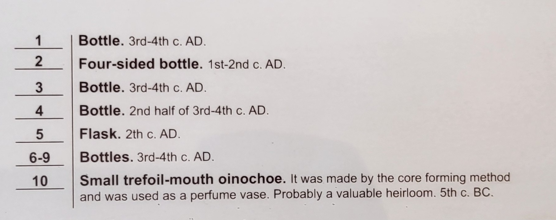 그리스 올림피아 고고학 박물관에는 로만 글라스 작은 전시 섹션이 있어 이 코너를 소개한다.