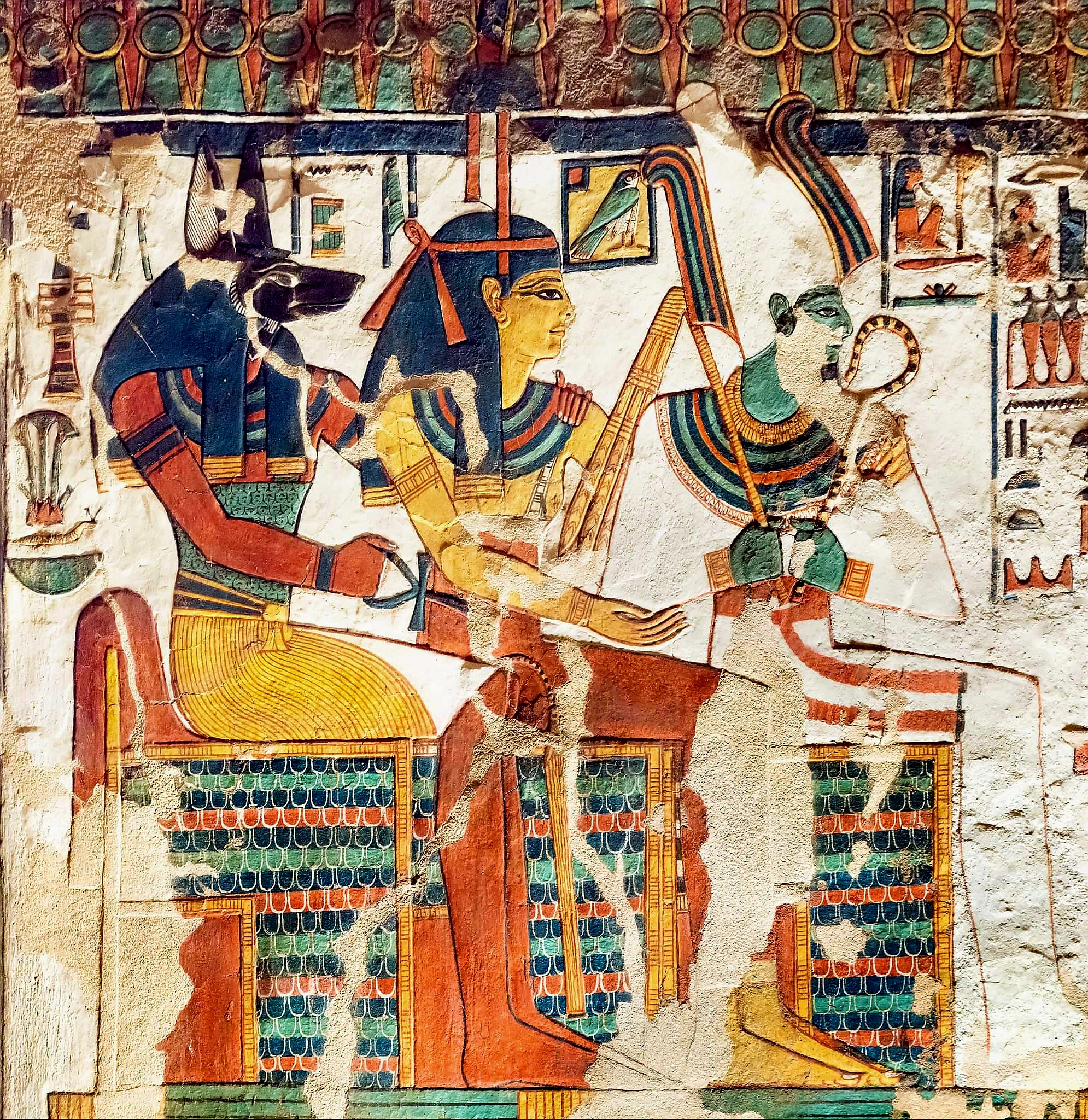 왕들의 계곡에 견주어 여왕의 계곡 Valley of the Queens이라 일컫는 곳에서 발견된 네페르타리Nefertari 왕비 무덤(QV66) 벽화 세부다.