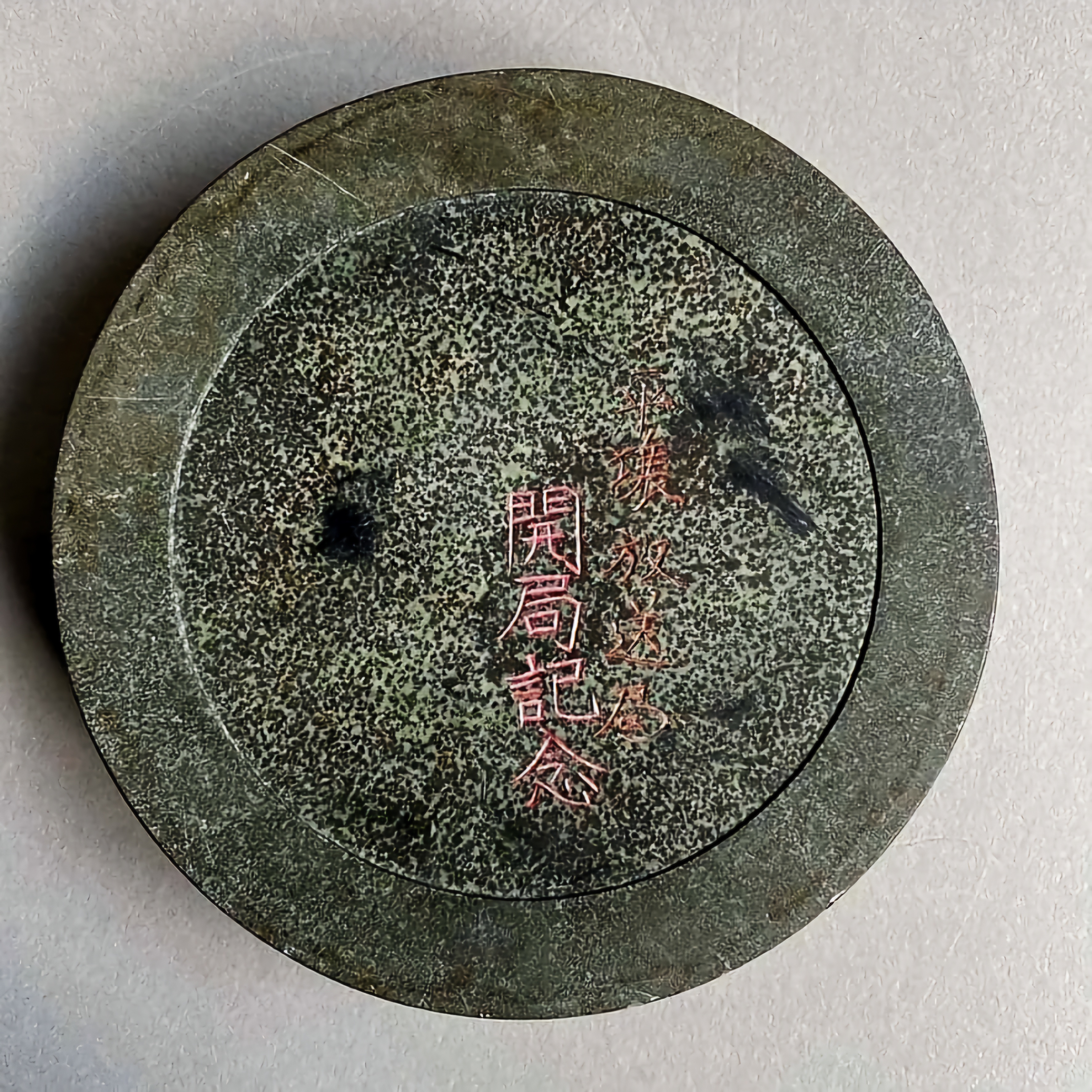 바닥면에 새긴 아홉 글자, "평양방송국 개국기념"이다.