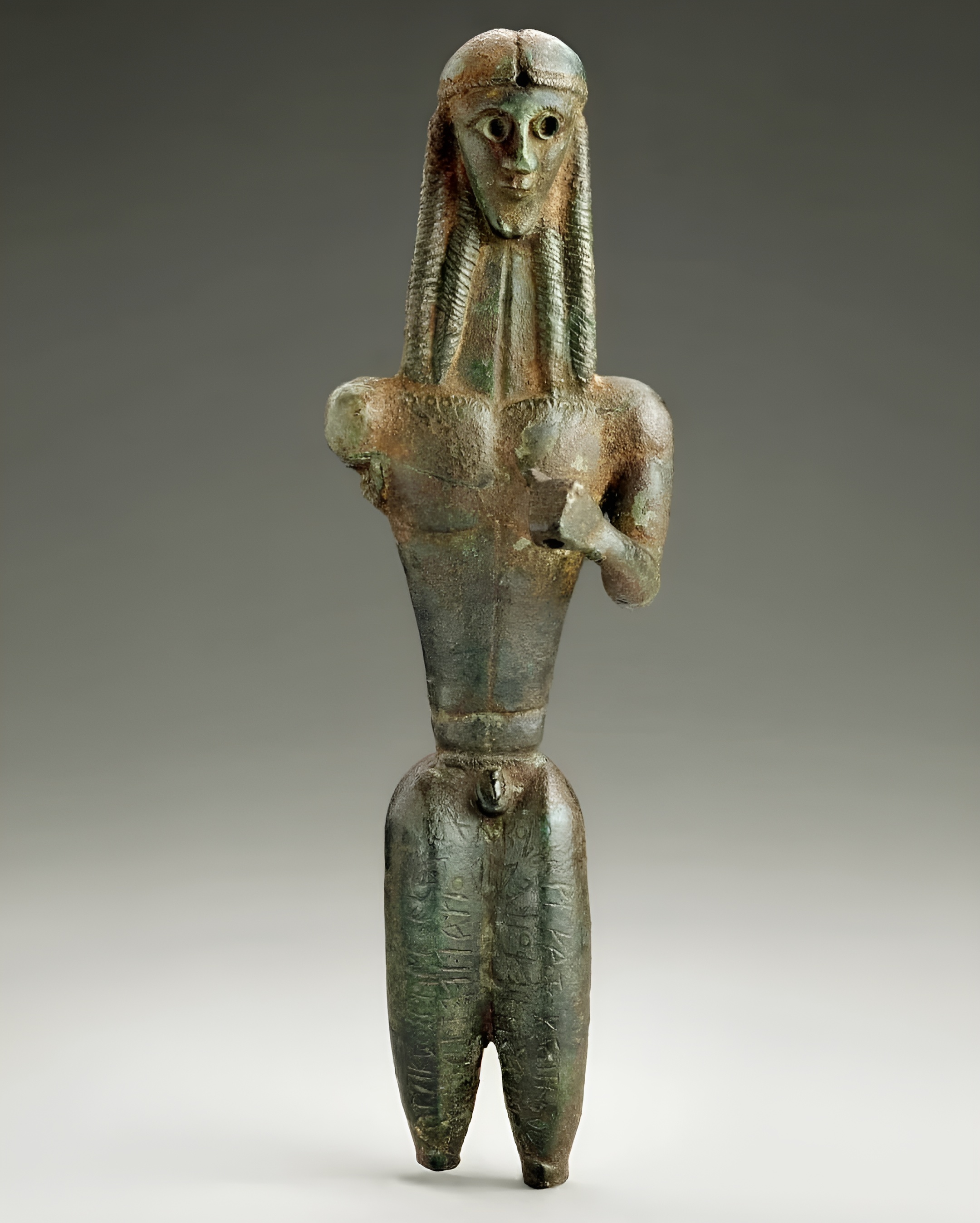 "만티클로스 아폴로Mantiklos Apollo"로 알려진 이 청동 봉납용votive 조각상은 적어도 2,600살 된 것으로