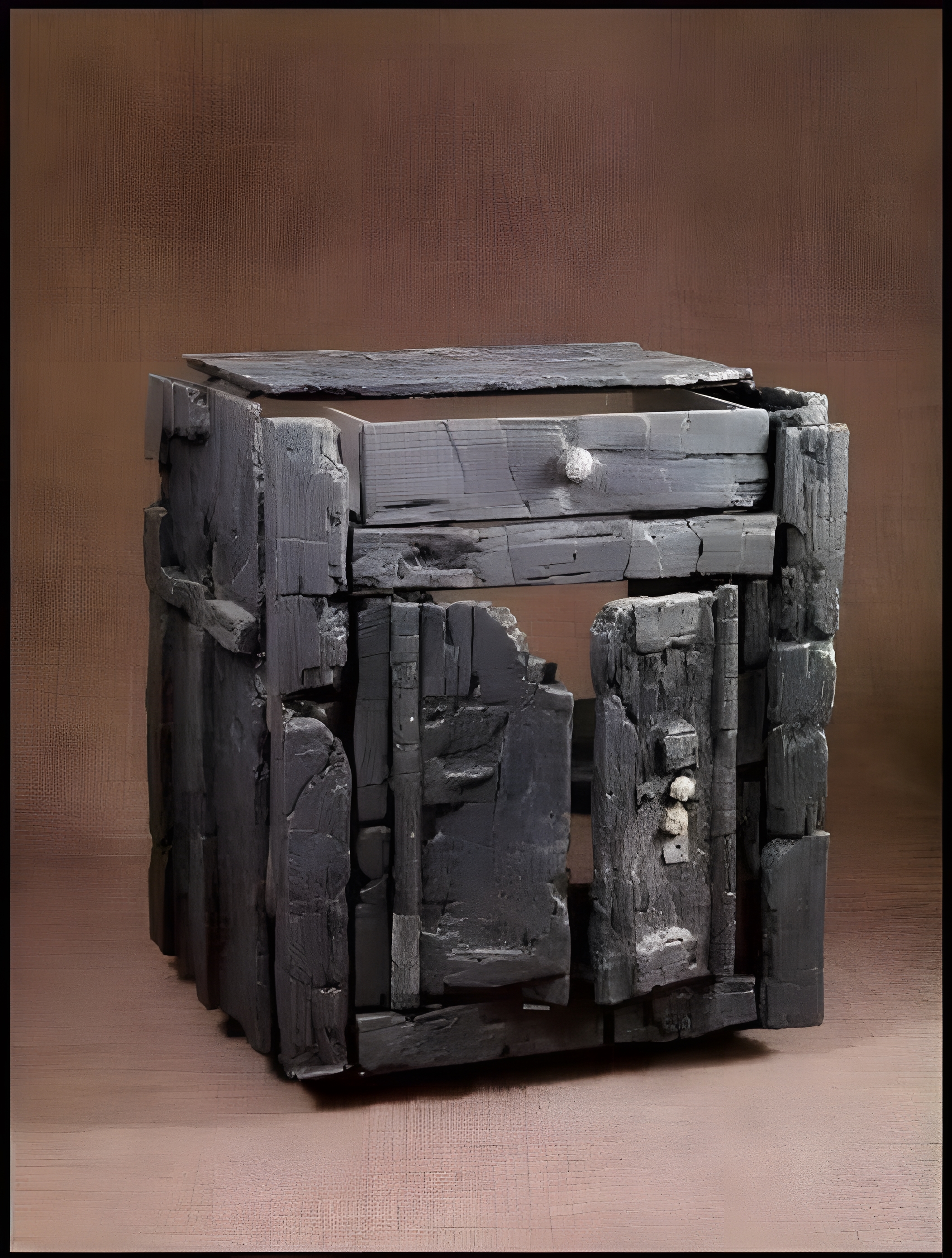 A wooden cupboard found from Herculaneum, carbonized by the eruption of Mt. Vesuvius in 79 AD.
