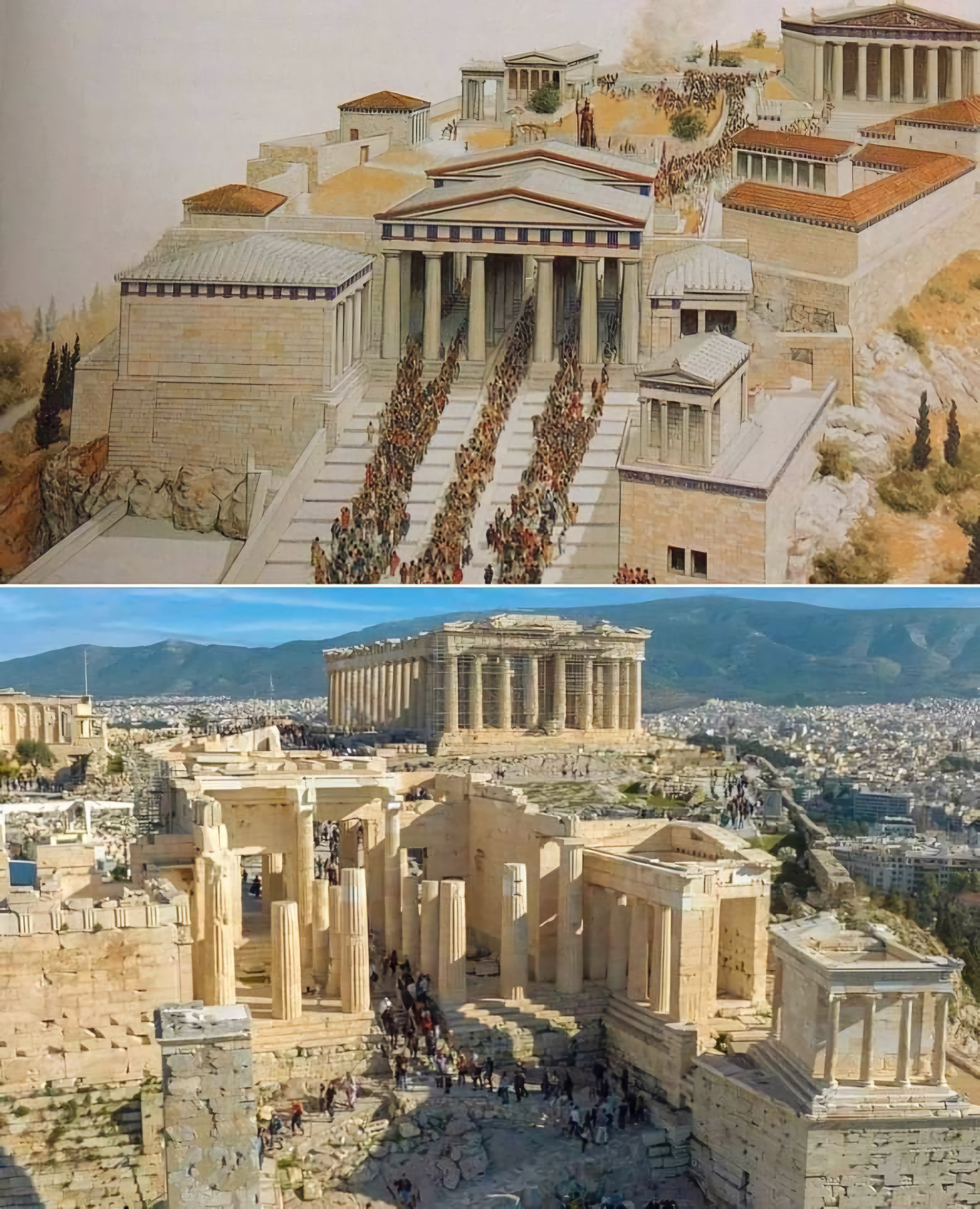 오늘날 아크로폴리스에서 볼 수 있는 대부분의 중요한 건물들, 즉 파르테논, 프로필라이아Propylaia, 에레크테이온Erechtheion, 아테나 니케 신전 temple of Athena Nike은 당대 최고의 건축가, 조각가, 예술가들의 감독하에 이 시기에 세워졌다.