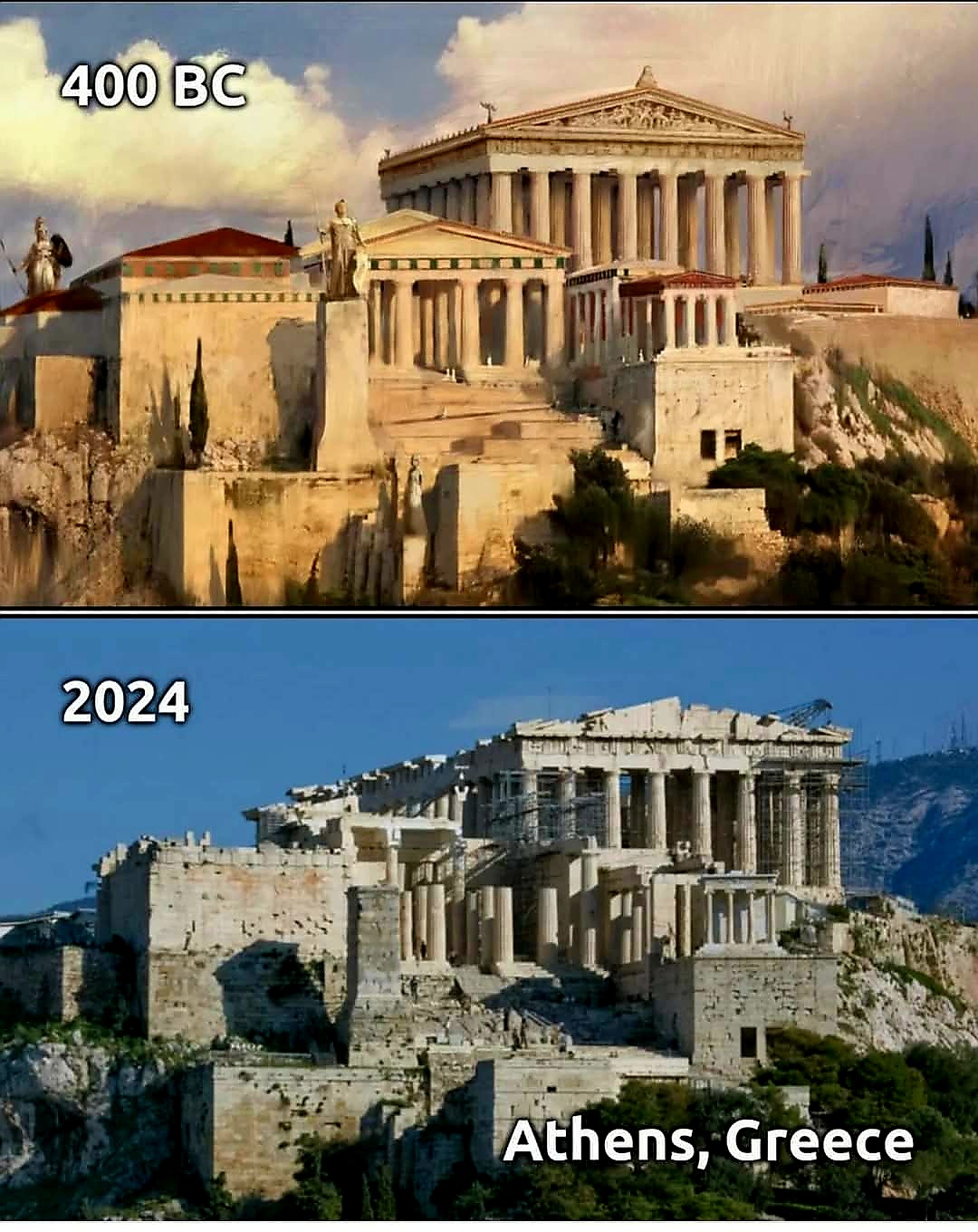 이 도시 후원자인 아테나 여신을 위한 성전이 주축인 아테네 아크로폴리스는 아무래도 파르테논 이전과 이후로 나눔이 좋을 듯하다.