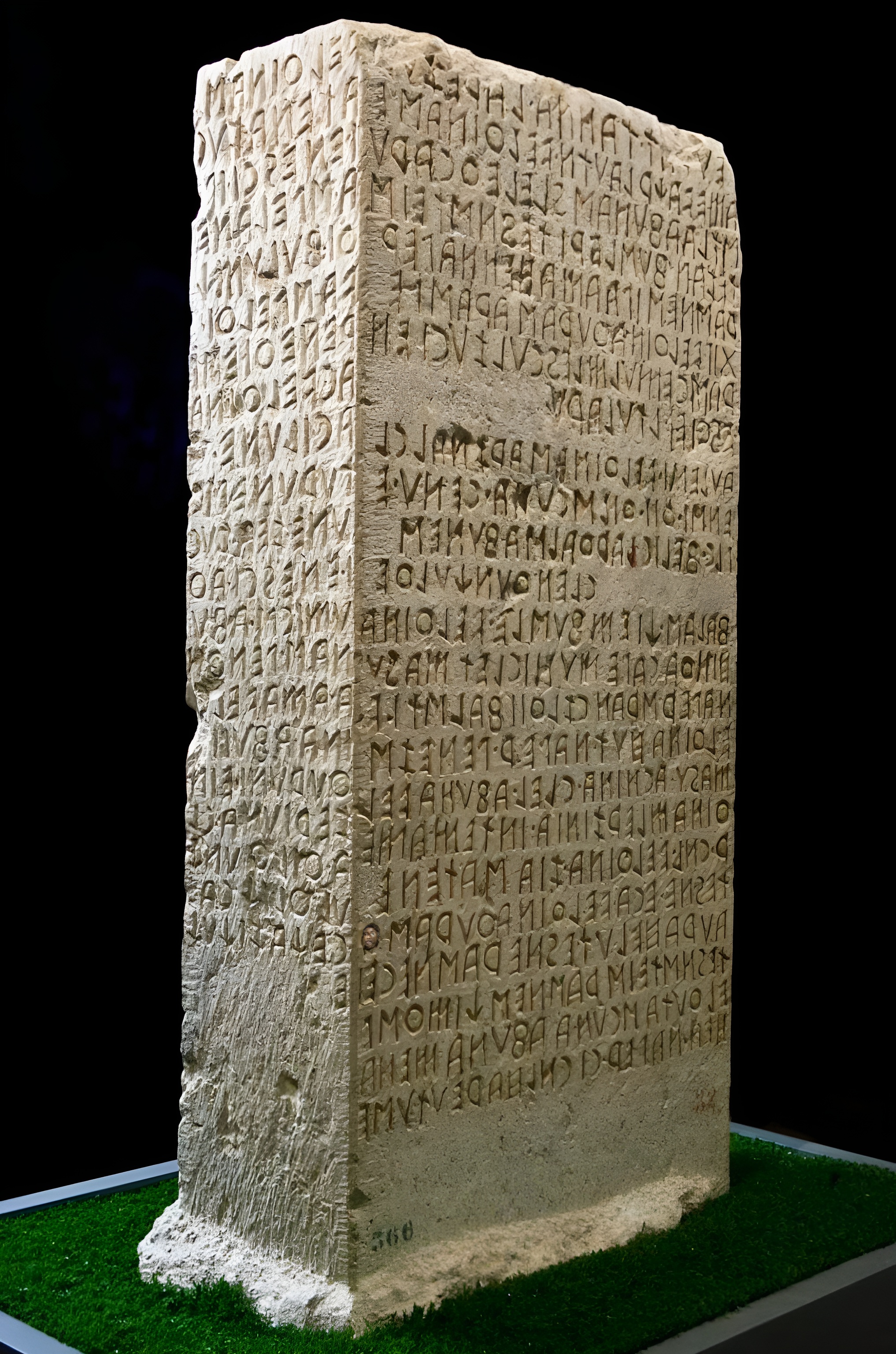 46줄 에트루리아 텍스트를 새긴 석판으로 키푸스 페루시누스 Cippus Perusinus라 부른다.
