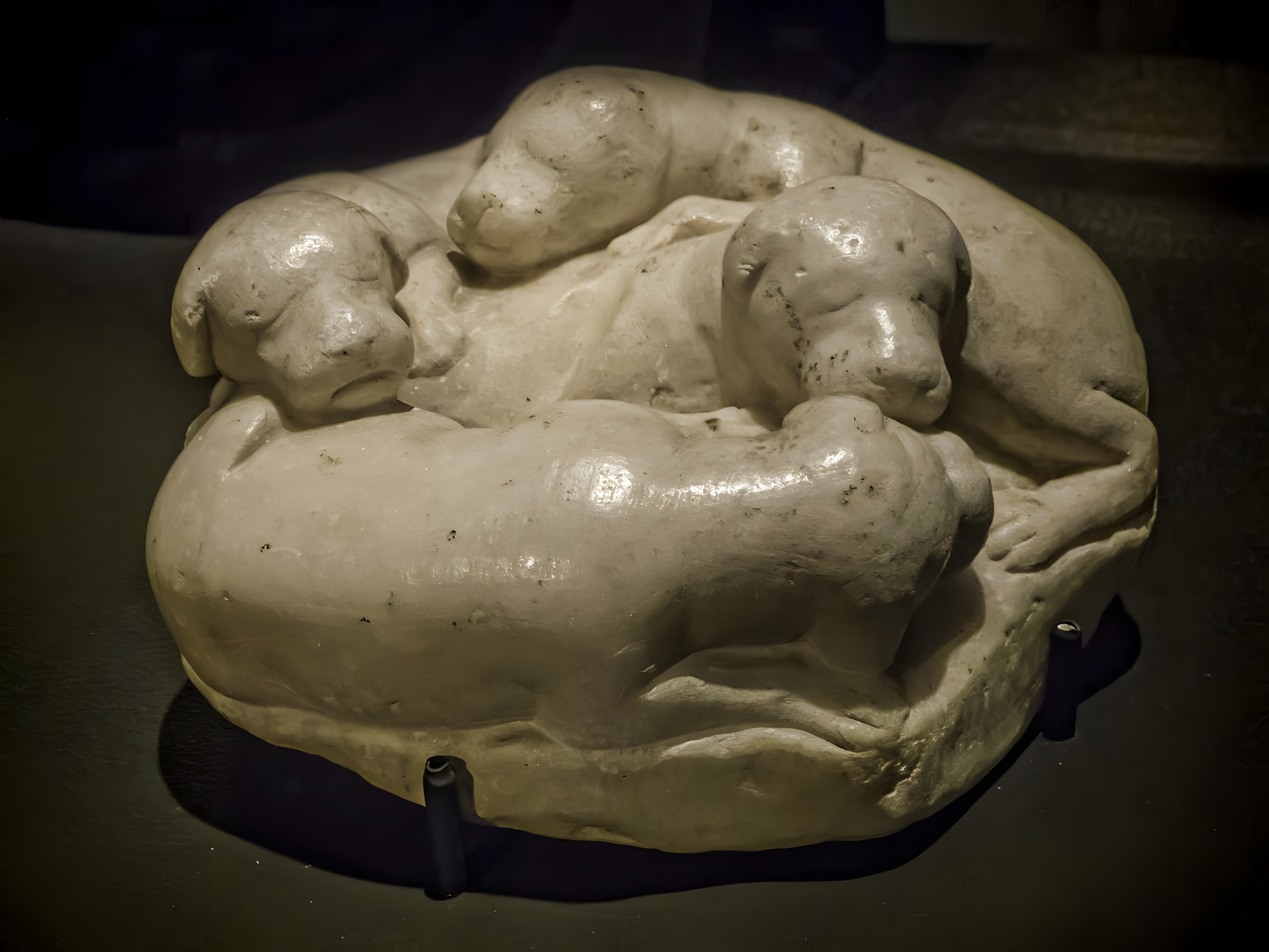 네 마리 강아지를 대리석으로 표현한 조각이라,