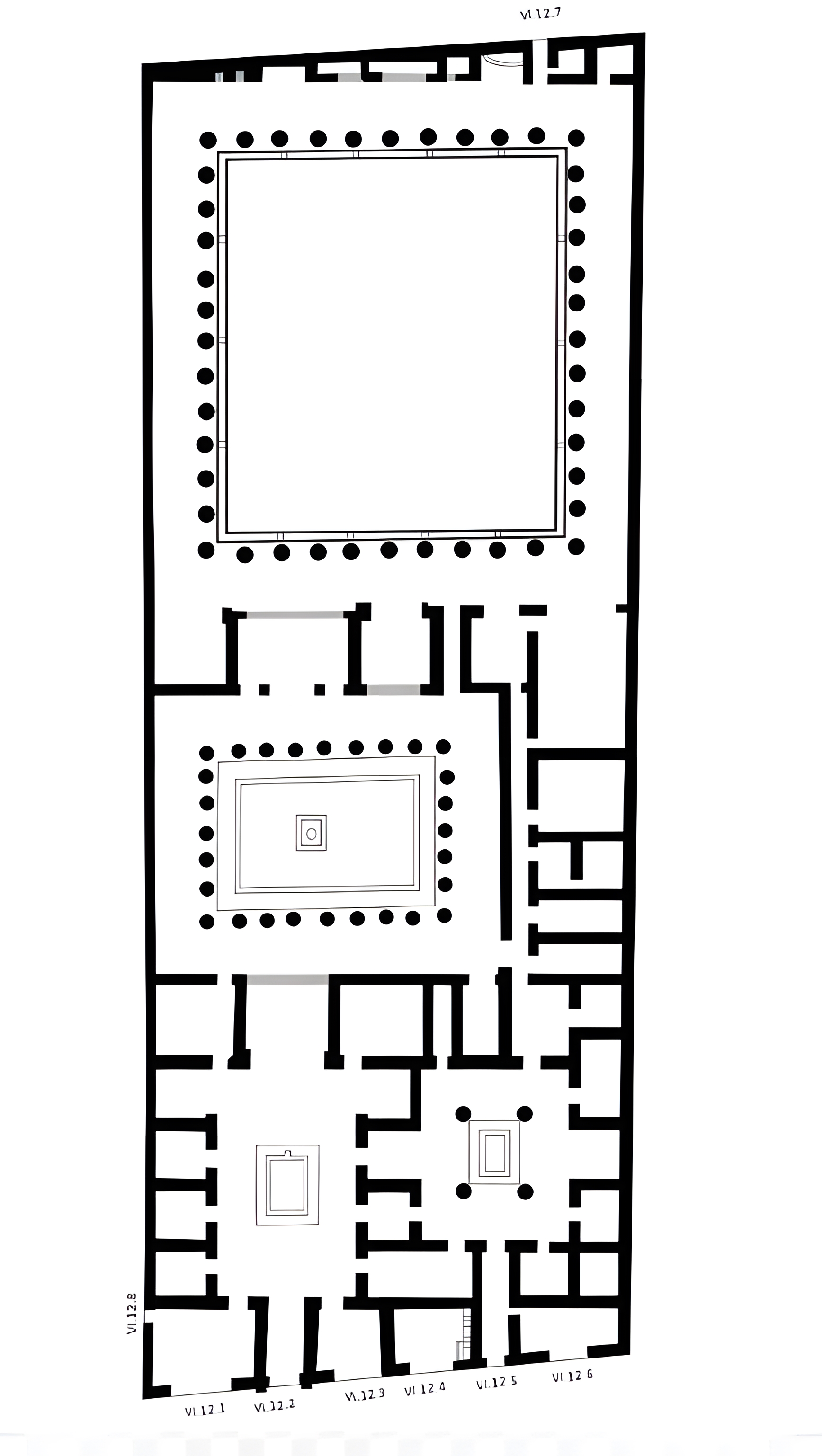 또한 두 개 아트리움 atriums, 토스카나 아트리움과 페리스타일 아트리움 Tuscan and the peristyle atrium 이 있다.