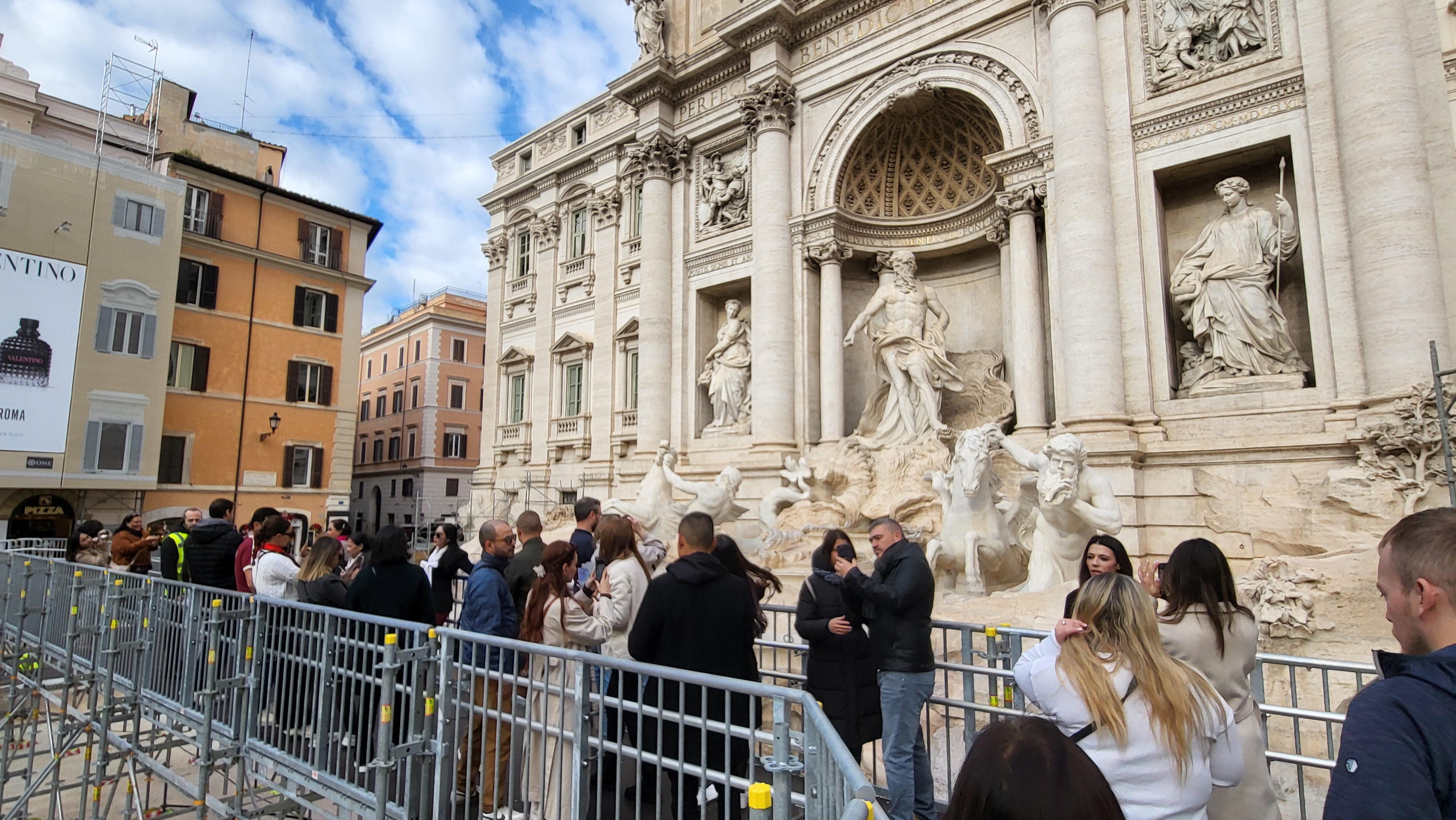 마침 가는 길목이라 로마 도착 저녁에 잠깐 둘러본 트레비 분수 개보수 현장을 아침 나절에 다시 찾아 둘러봤다.
