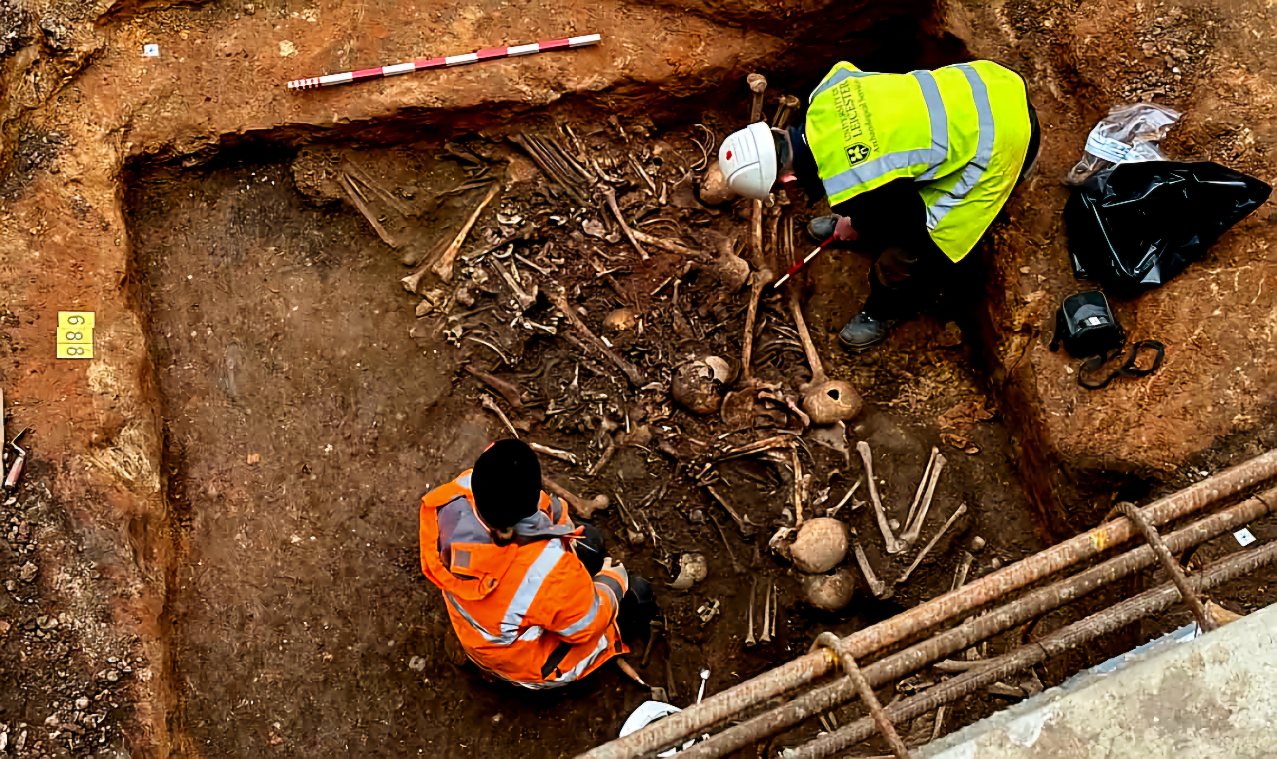 영국 레스터에서 고고학도들이 대성당 근처에서 123명에 이르는 남녀와 어린이 유해가 있는 좁은 매장지를 발견했다.