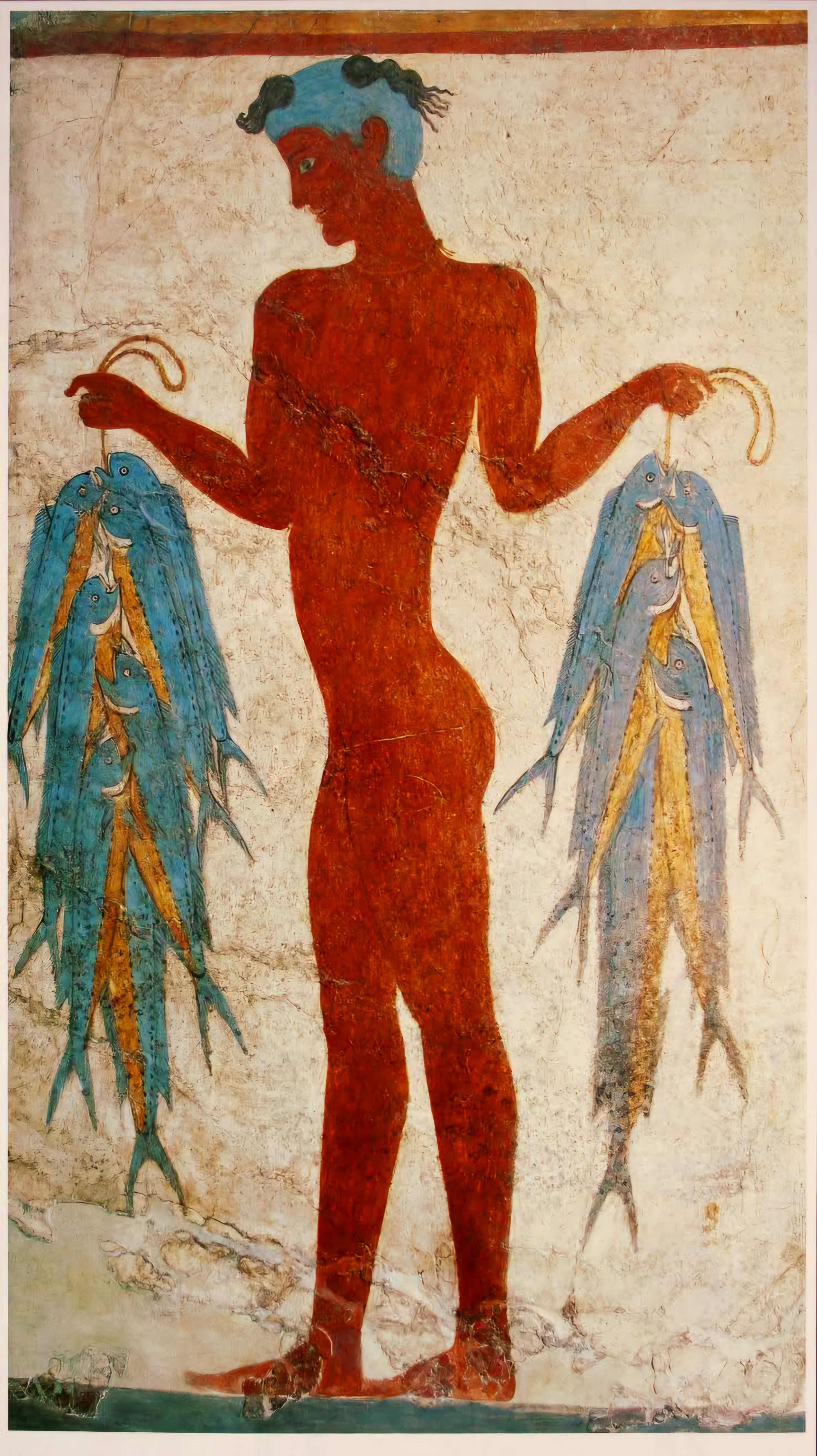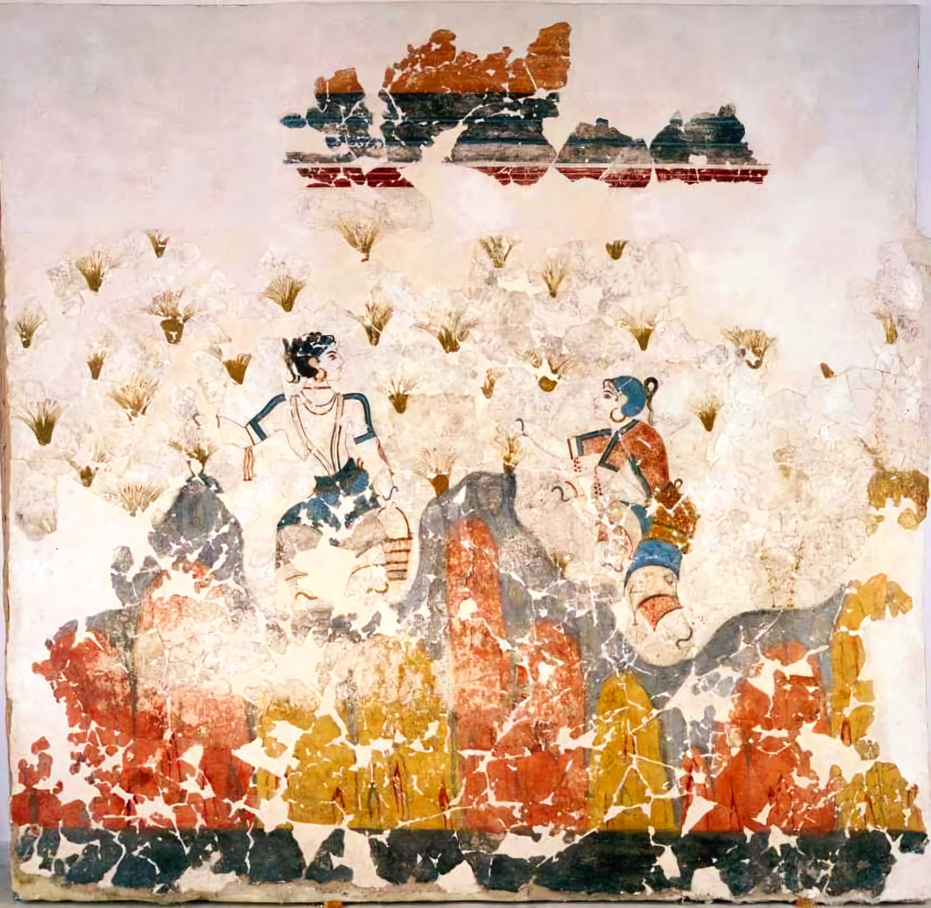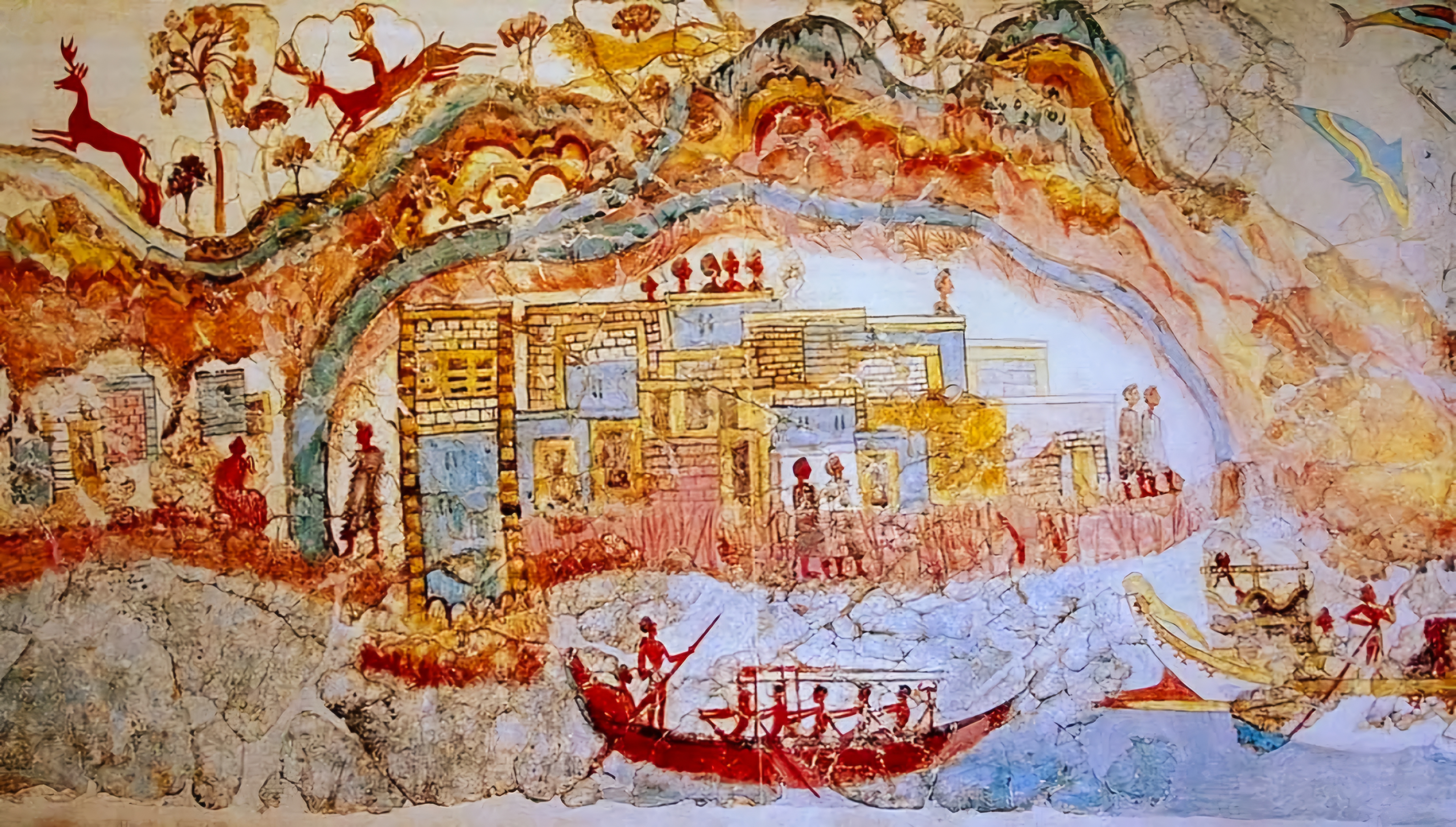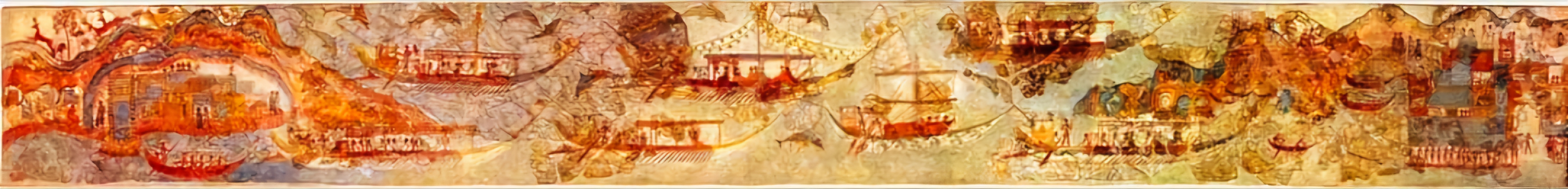에게해 티라Thera 섬(현재의 산토리니)에 있는 아크로티리 청동기 시대 프레스코화는 기원전 1650년에서 1550년 사이에 생성된 것으로