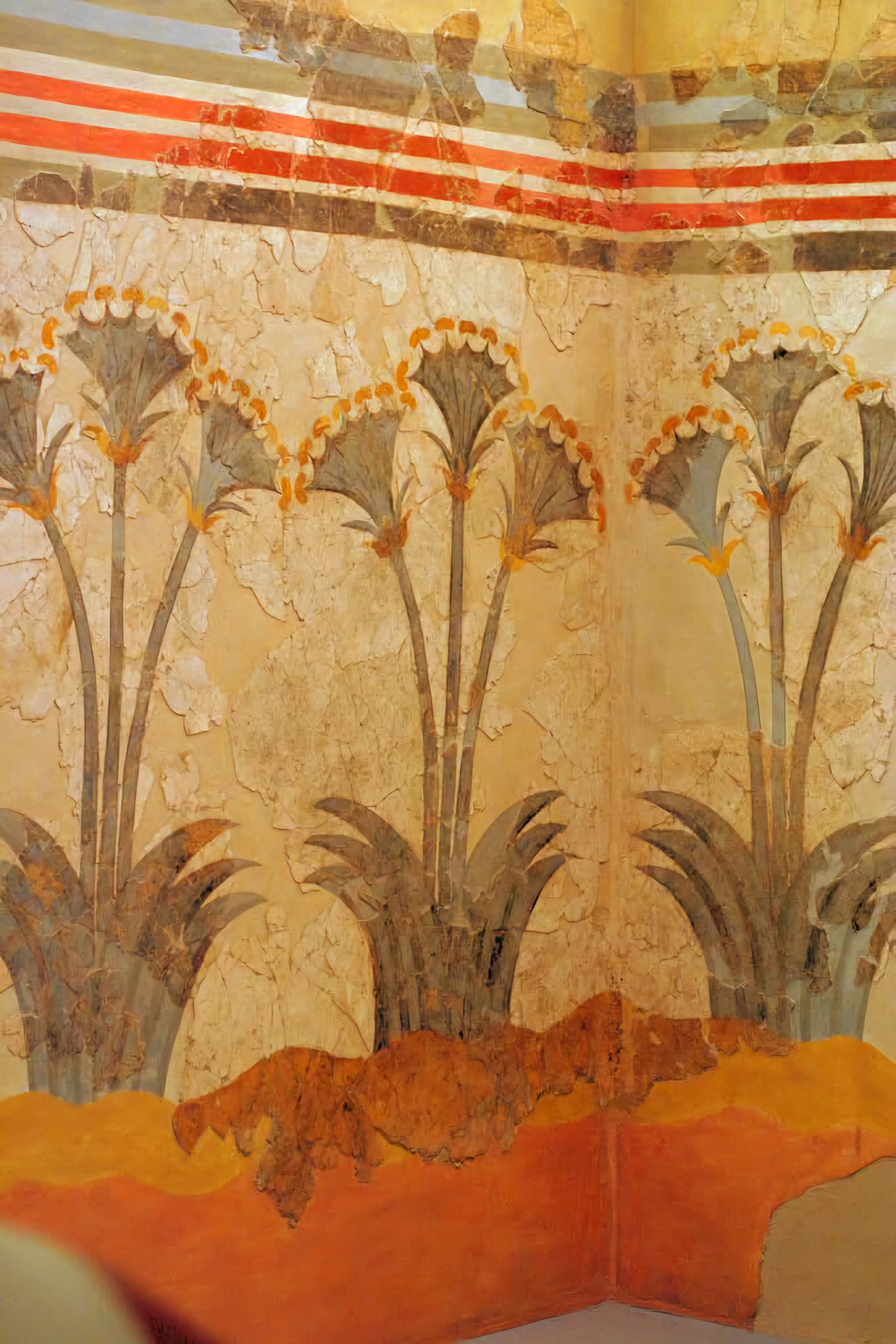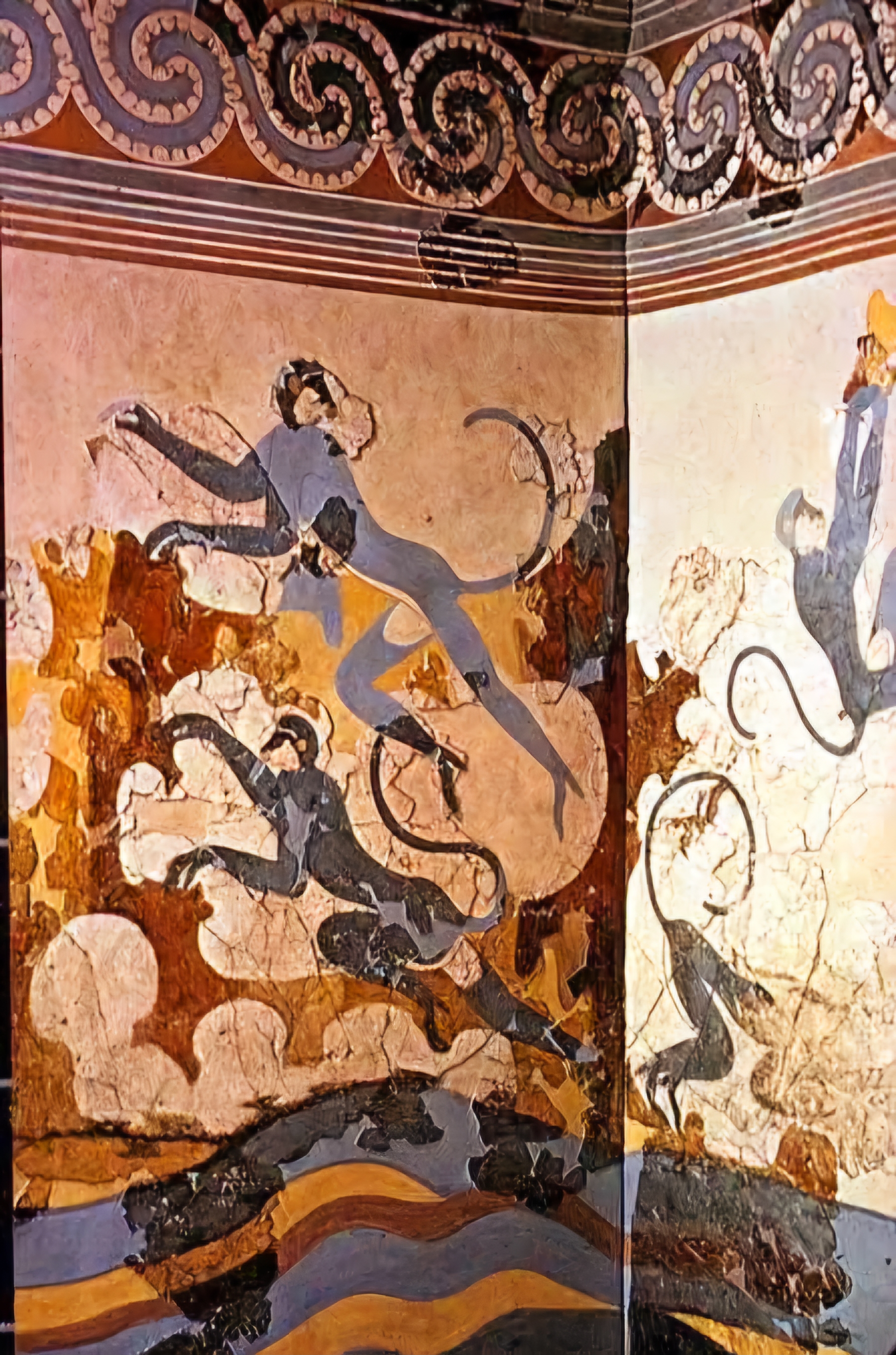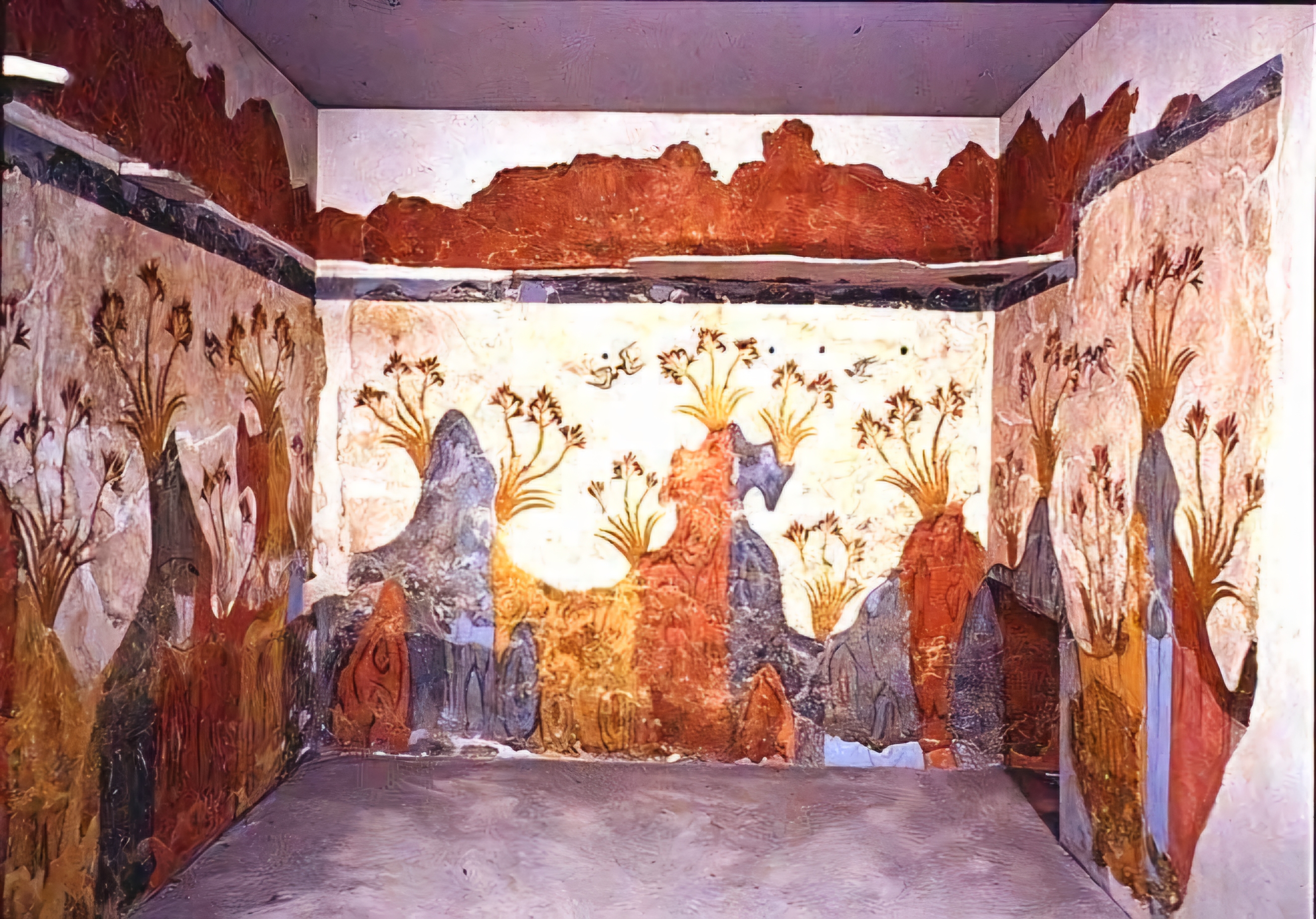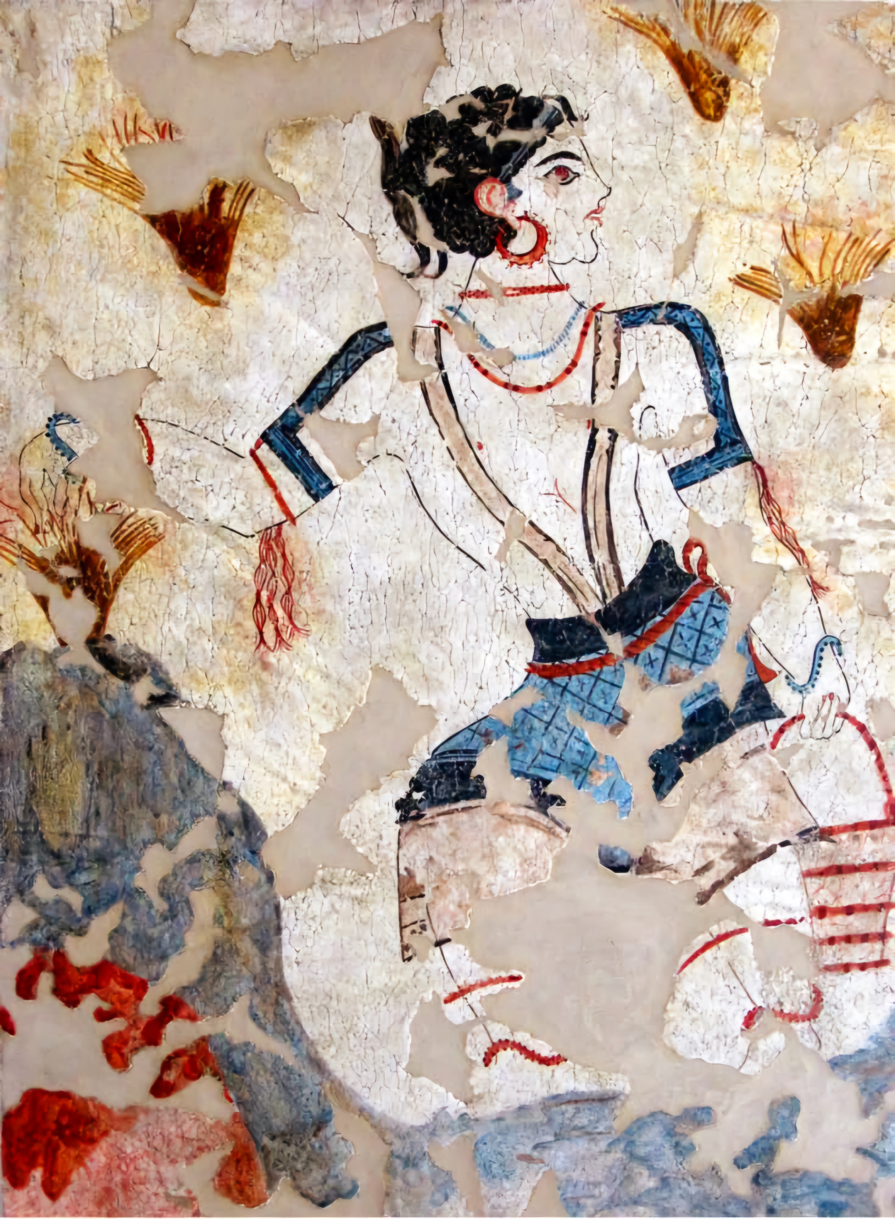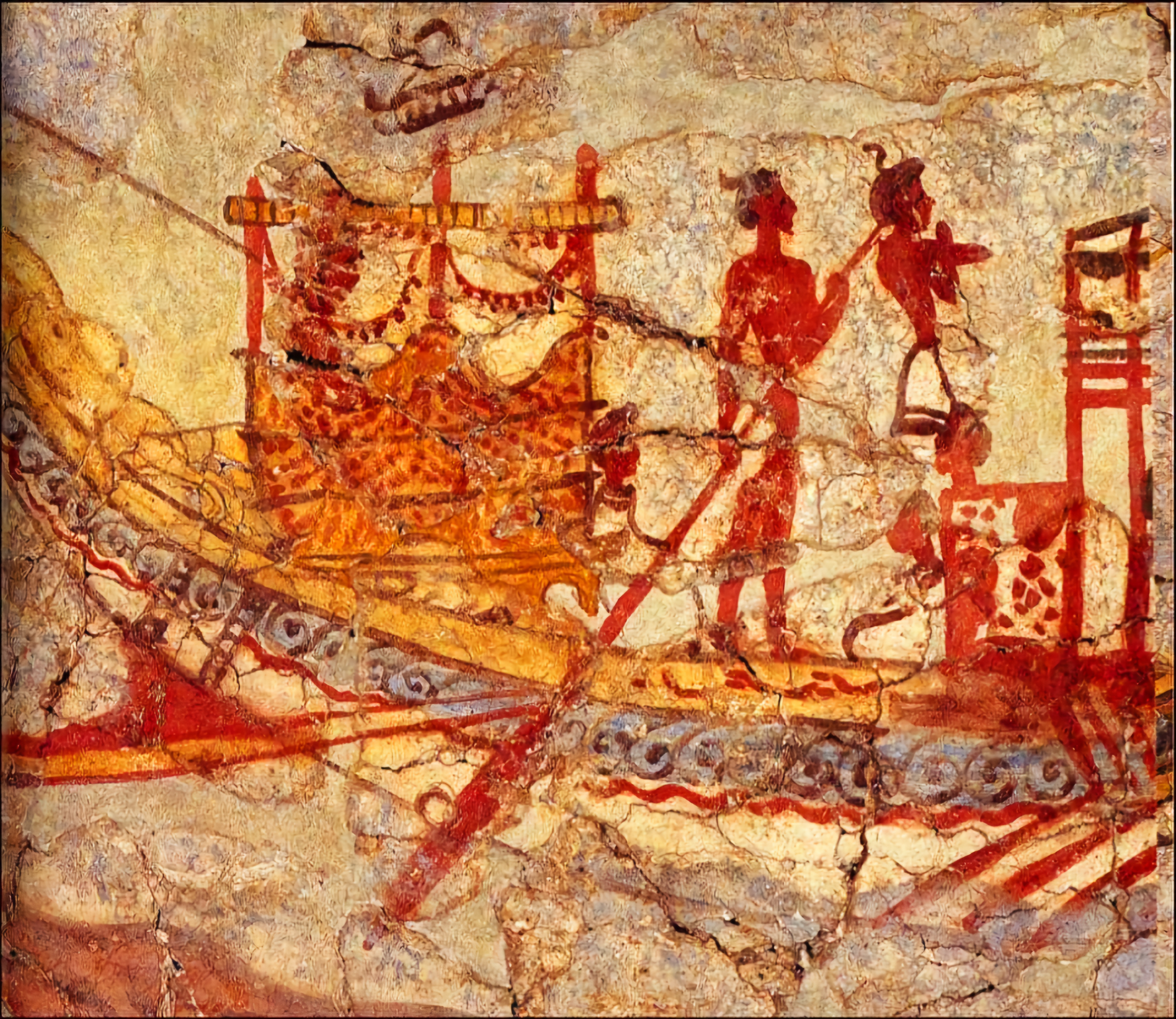 에게해 티라Thera 섬(현재의 산토리니)에 있는 아크로티리 청동기 시대 프레스코화는 기원전 1650년에서 1550년 사이에 생성된 것으로