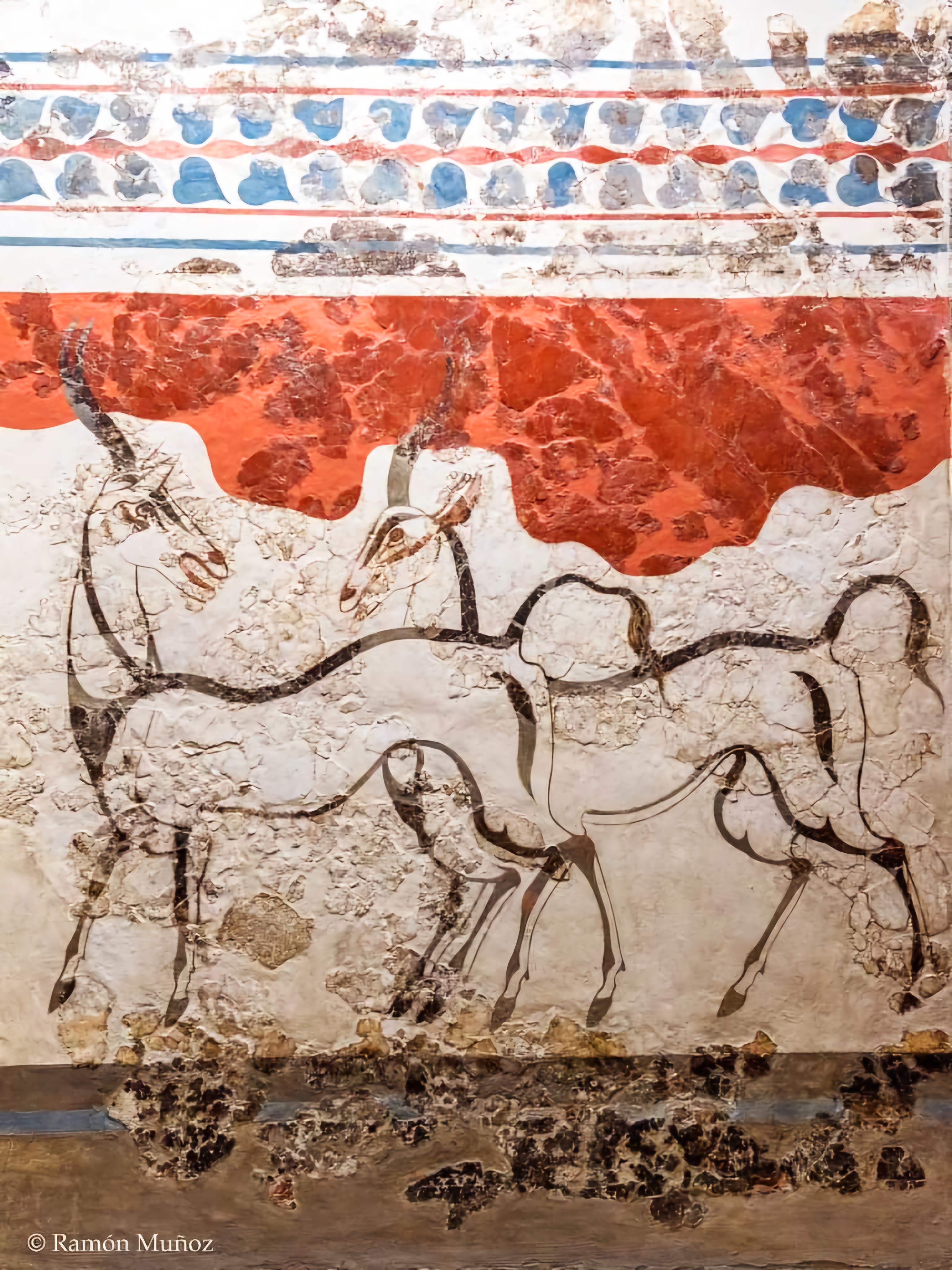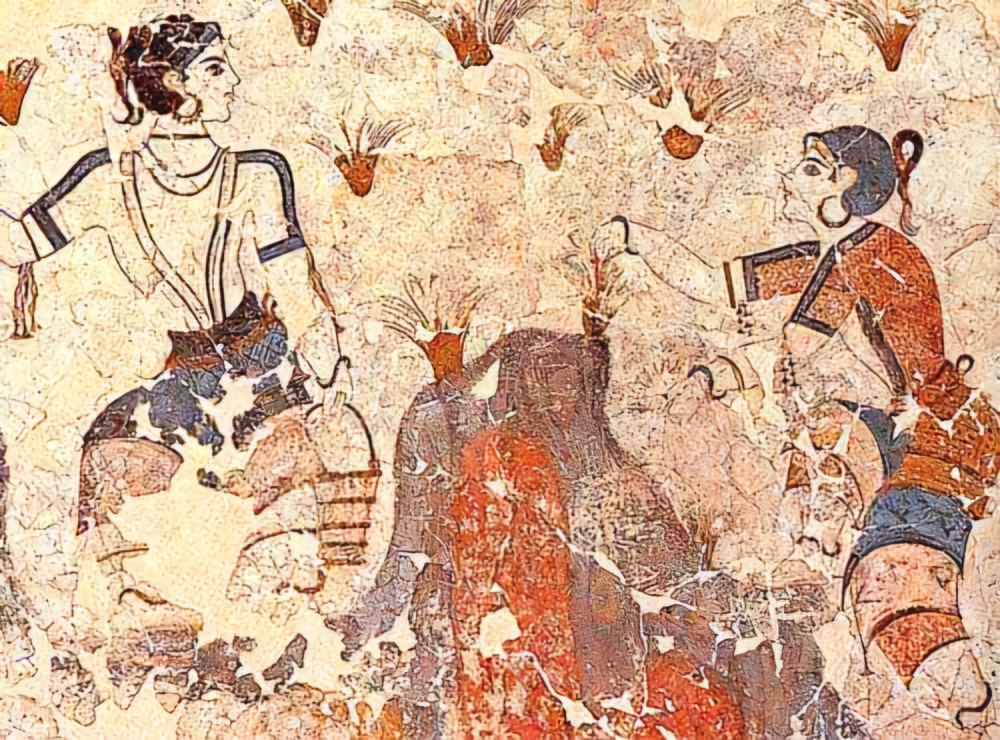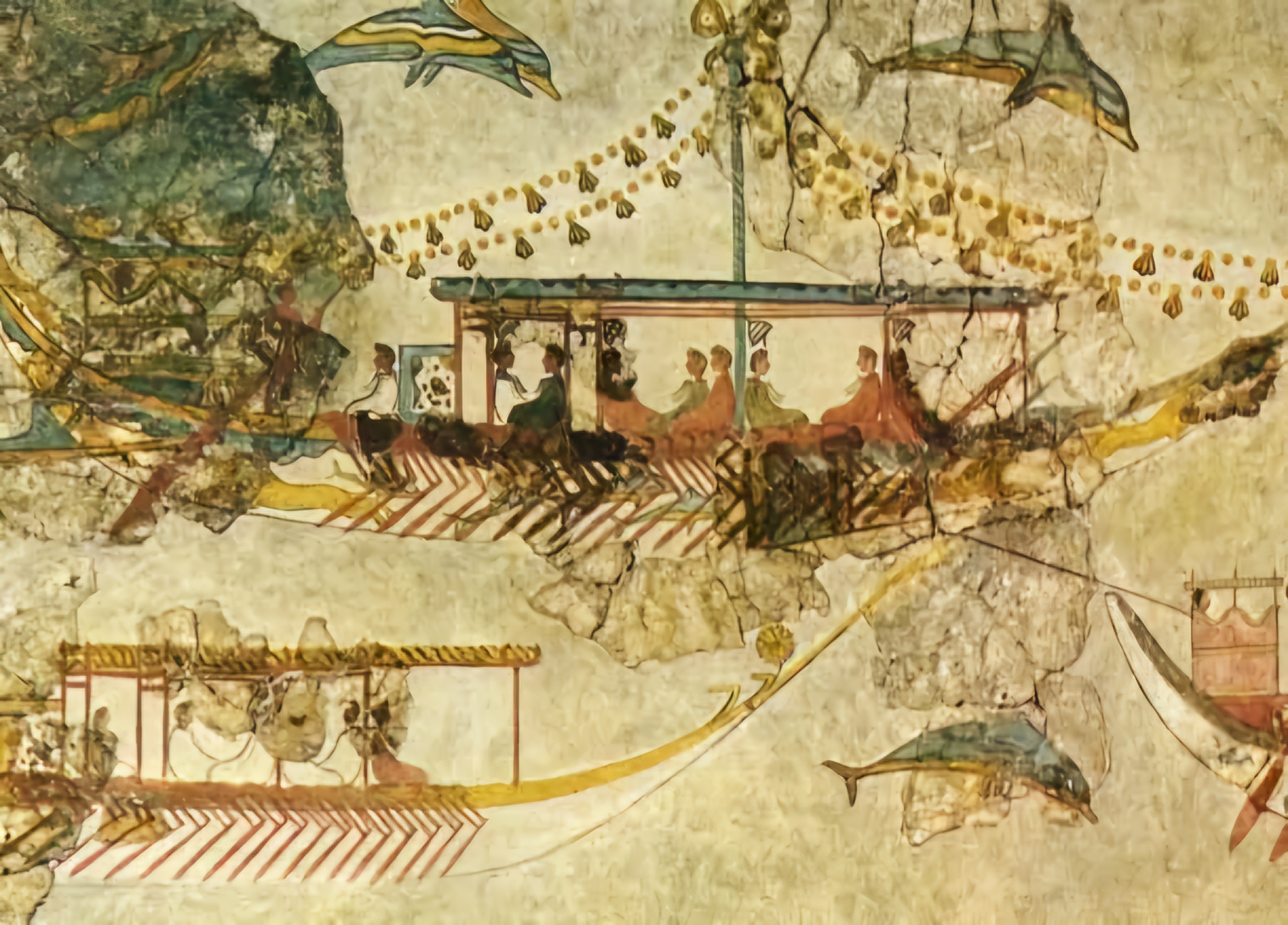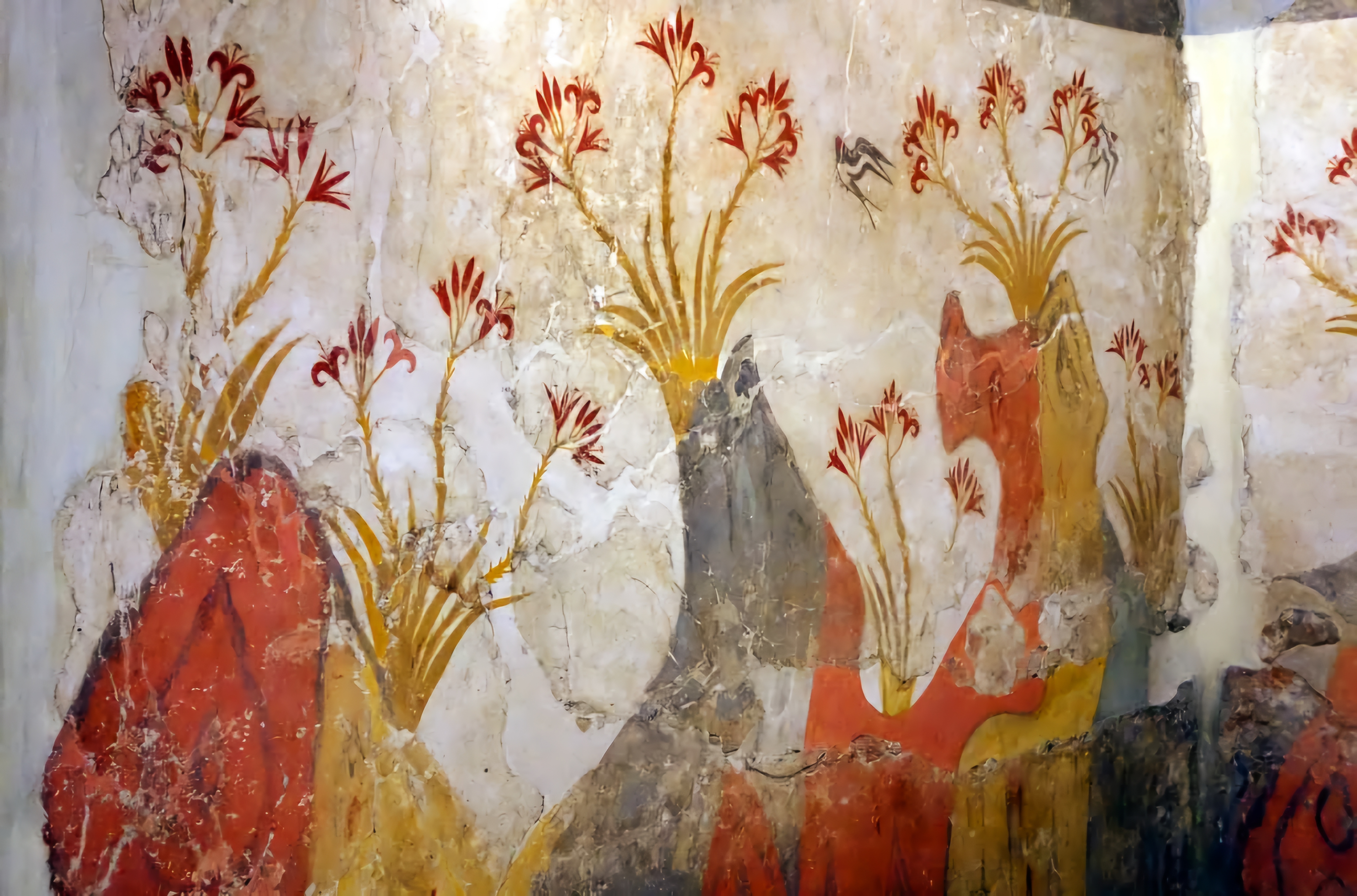 에게해 티라Thera 섬(현재의 산토리니)에 있는 아크로티리 청동기 시대 프레스코화는 기원전 1650년에서 1550년 사이에 생성된 것으로