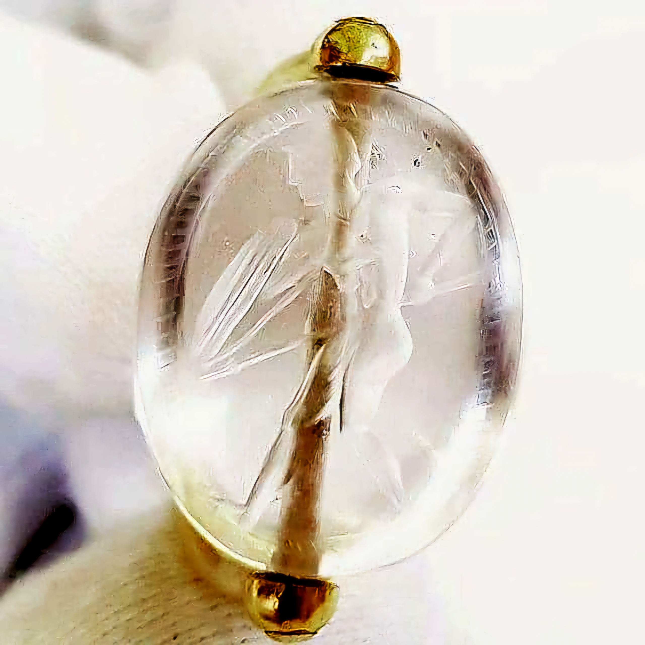 금과 칼케도니chalcedony로 만든 트라키아 도장 반지 Thracian stamp ring 랜다.