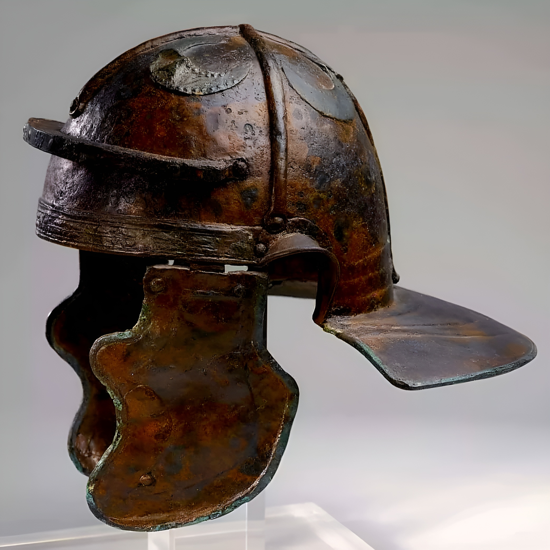 헬멧은 공국 시대 Principate period에 로마인들이 군사용 헤드기어로 흔히 사용한 철로 만들었다.