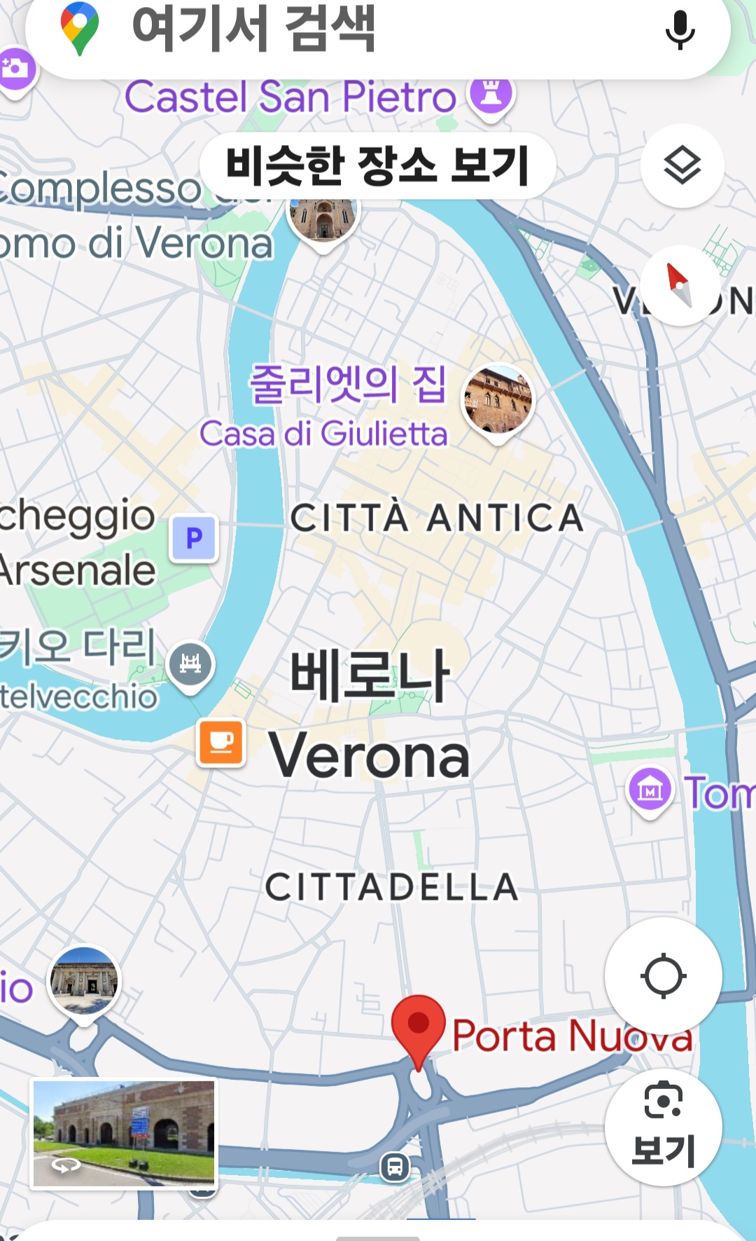 일단 뚜벅뚜벅 걸어 구글맵 따라 위선 그곳을 향했으니 역 기준 베로나 구심 중앙 동쪽으로 좀 치우친 북쪽 지점에 해당해서