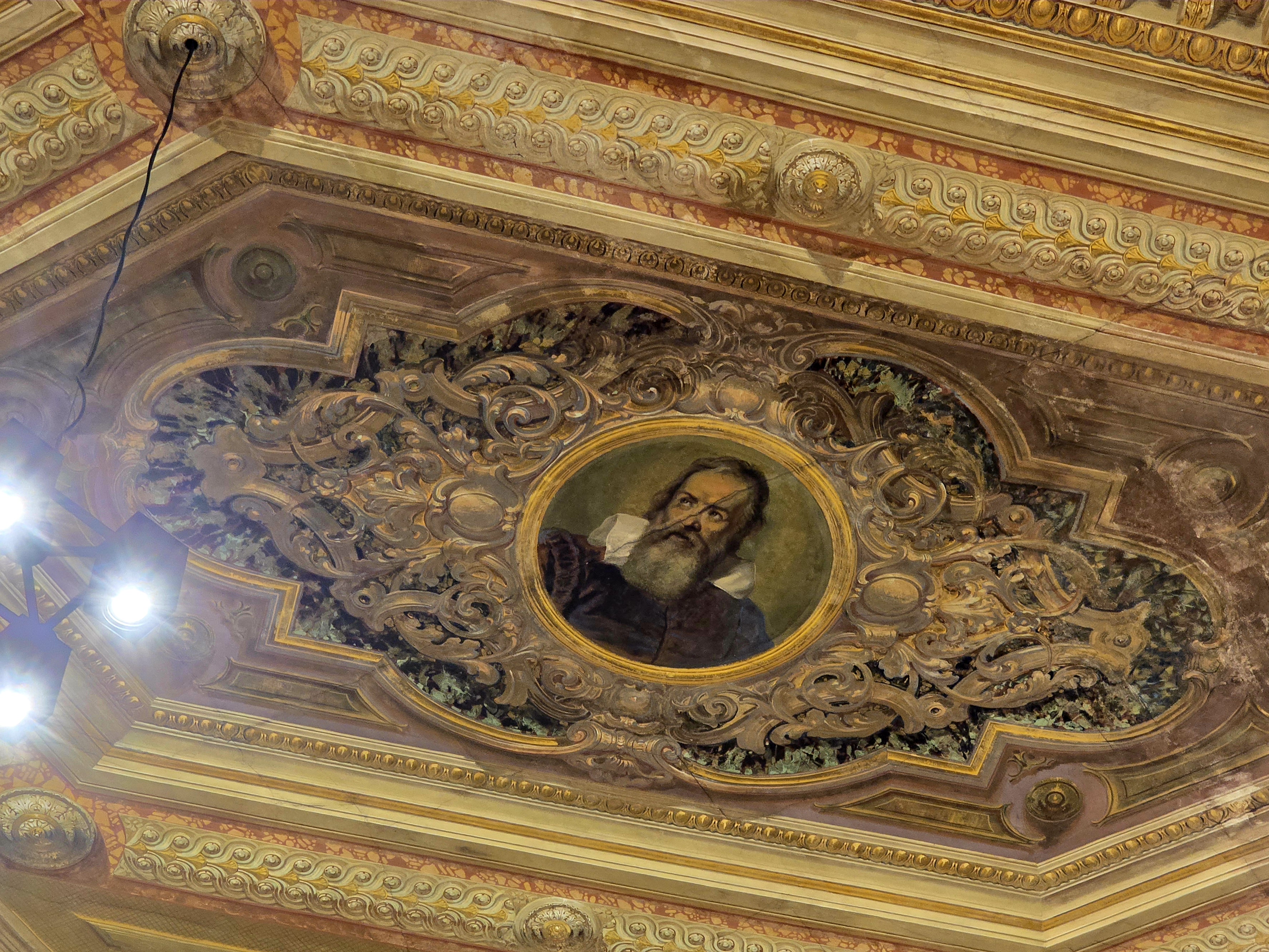 그를 둘러싸고 이 대학이 개설한 여러 학문을 상징하는 알레고리가 있으니 그 테두리를 장식한 인물 중에 당연히 갈릴레이가 들어있다.
