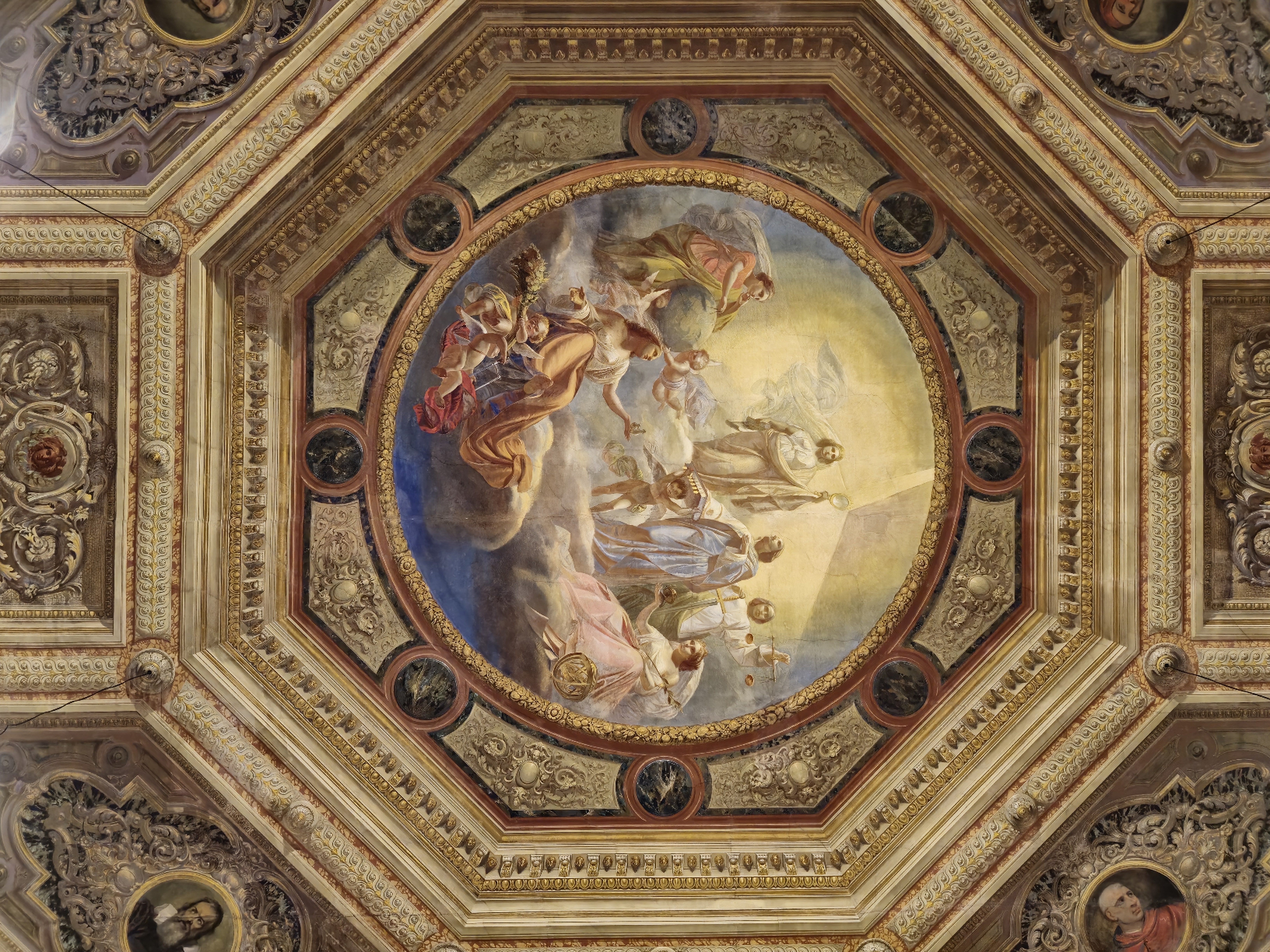 그 천장에는 훗날 그린 장대한 벽화가 있어 지식과 지혜를 상징하는 두 여신? 이 있고