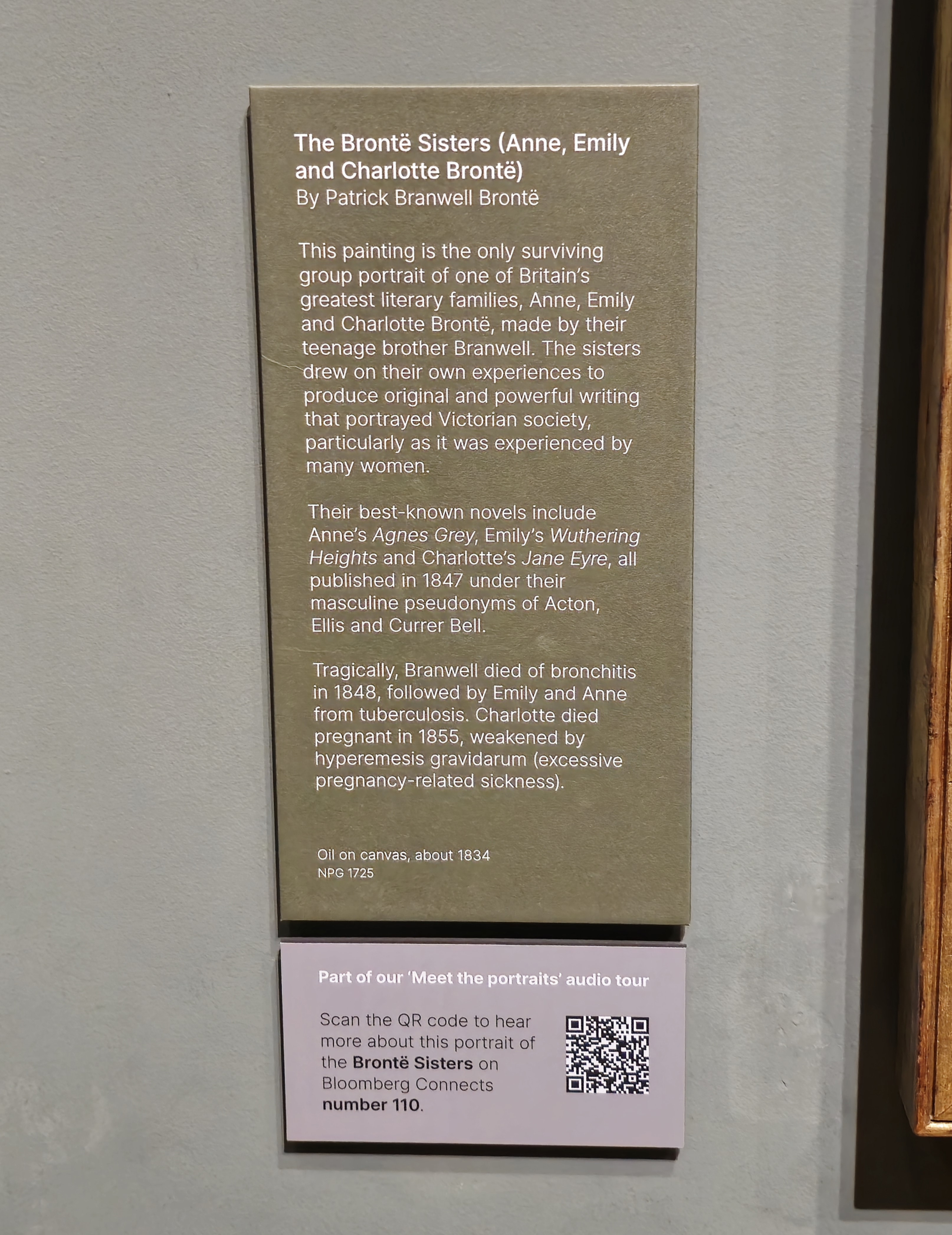This painting is the only surviving group portrait of one of Britain's greatest literary families, Anne, Emily and Charlotte Brontë, made by their teenage brother Branwell. The sisters drew on their own experiences to produce original and powerful writing that portrayed Victorian society, particularly as it was experienced by many women.