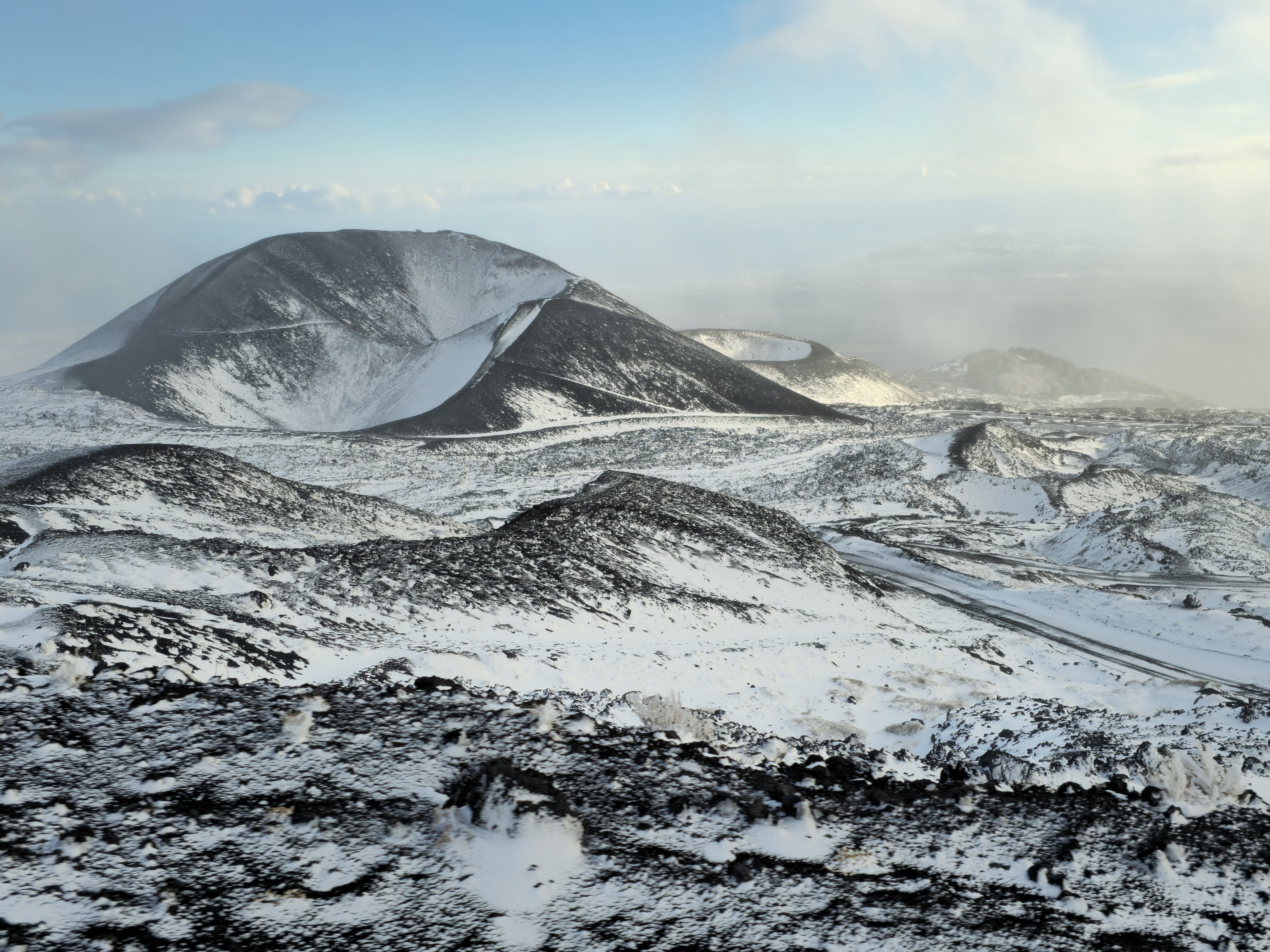 간단히 오늘 에트나 유람을 요약하면 변덕하는 날씨에 오돌오돌 추위에 떨면서 산 구경 눈 구경 고드름 구경 현무암 구경만 물리도록 했다.