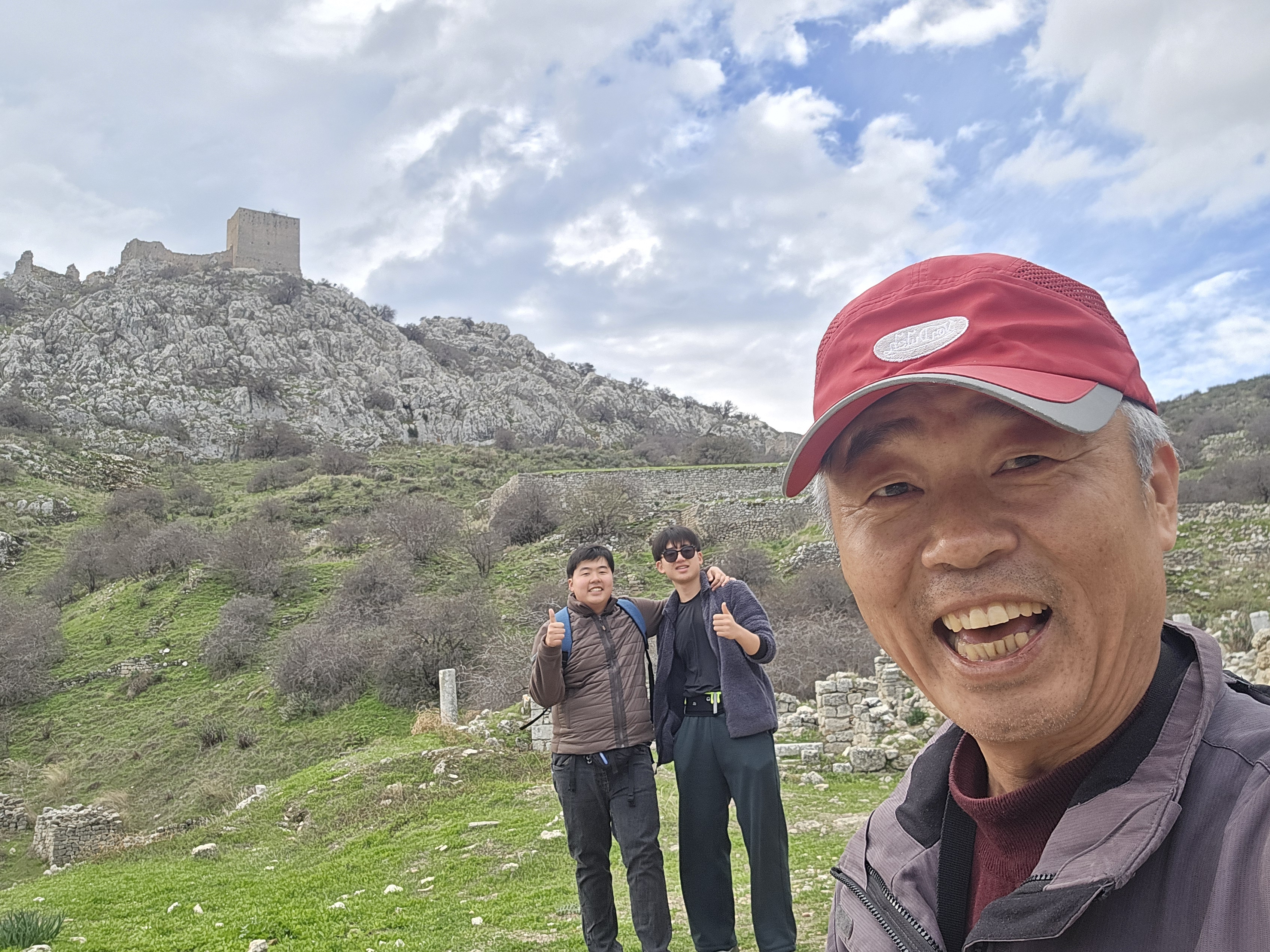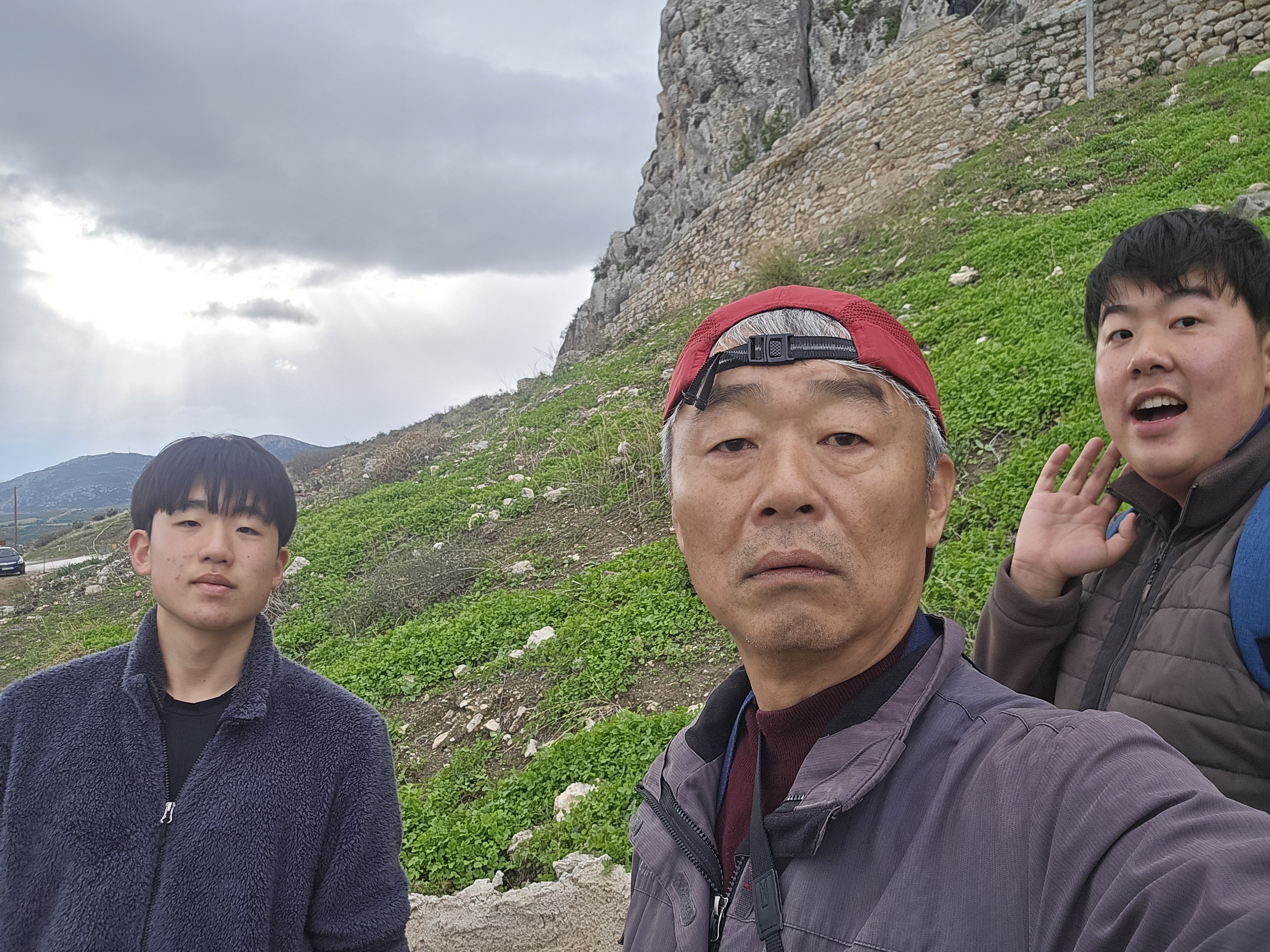 가장 높은 지점은 포기하고 코린트만을 조망하는 지점까지 올랐는데 애들이 좋아라 난리버거지다.