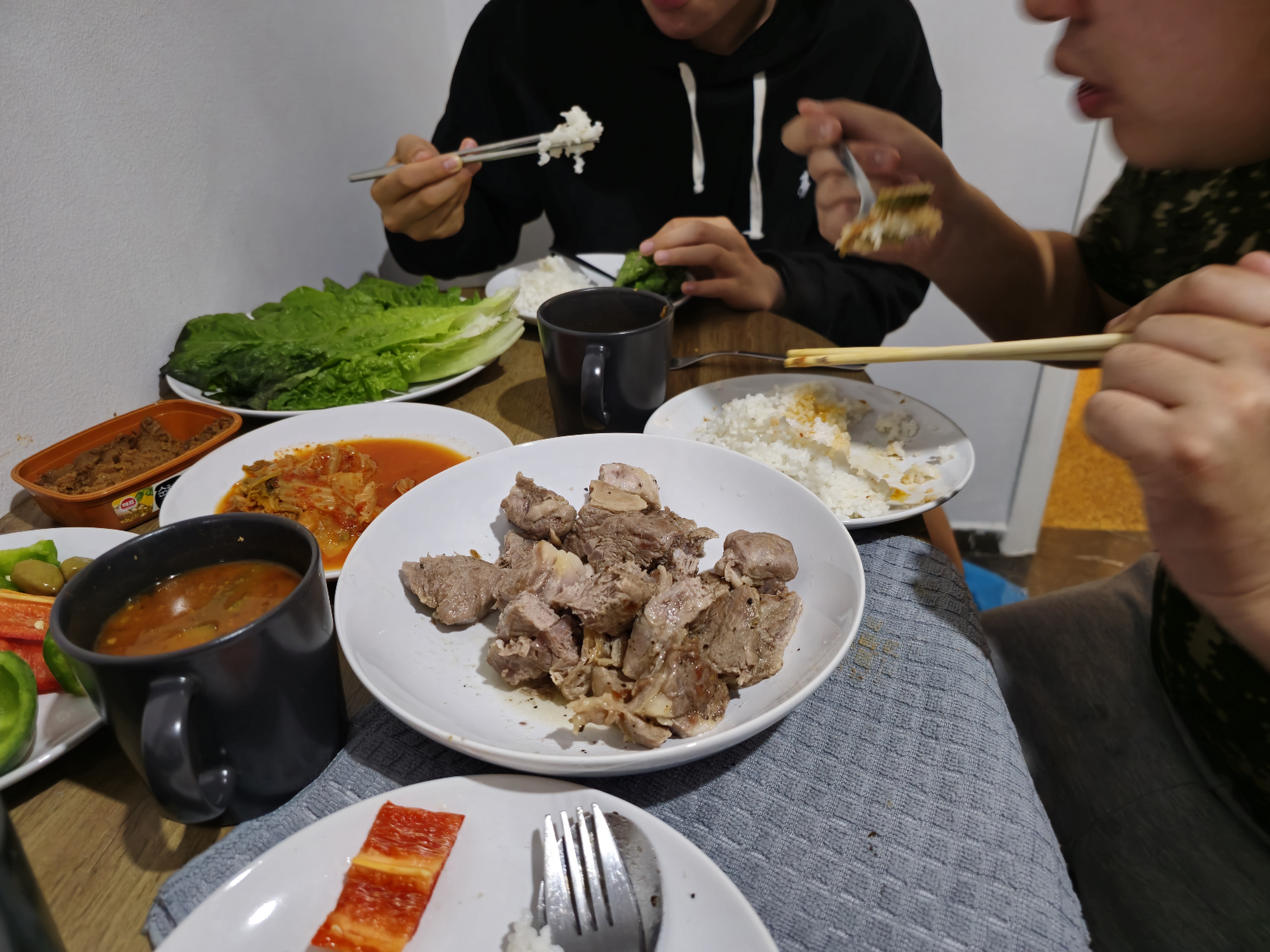 뭐 꼭 수육이겠는가마는 푹 익히겠다 뚜껑으로 덮었더니 수육이었다.