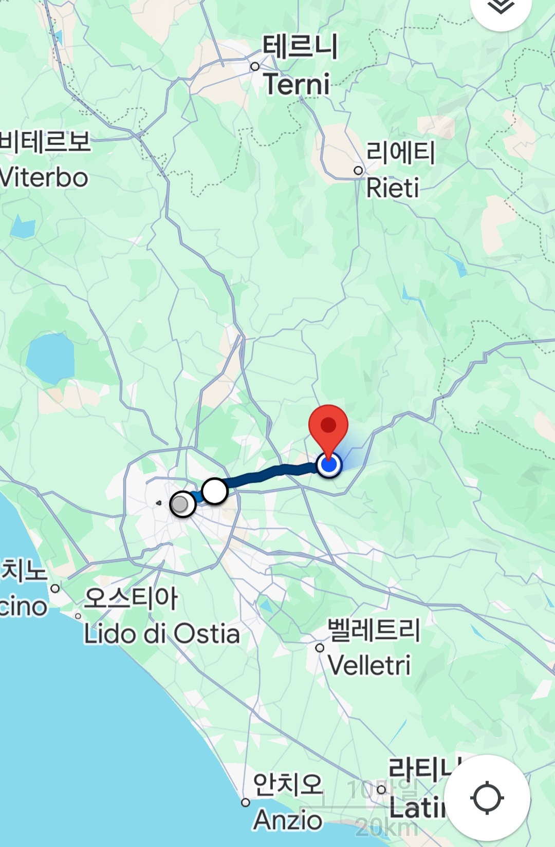 로마 중심에서는 대략 30킬로미터 지점, 폰테 마몰로Ponte Mammolo에서 버스가 대략 30분 간격으로 운행한다.