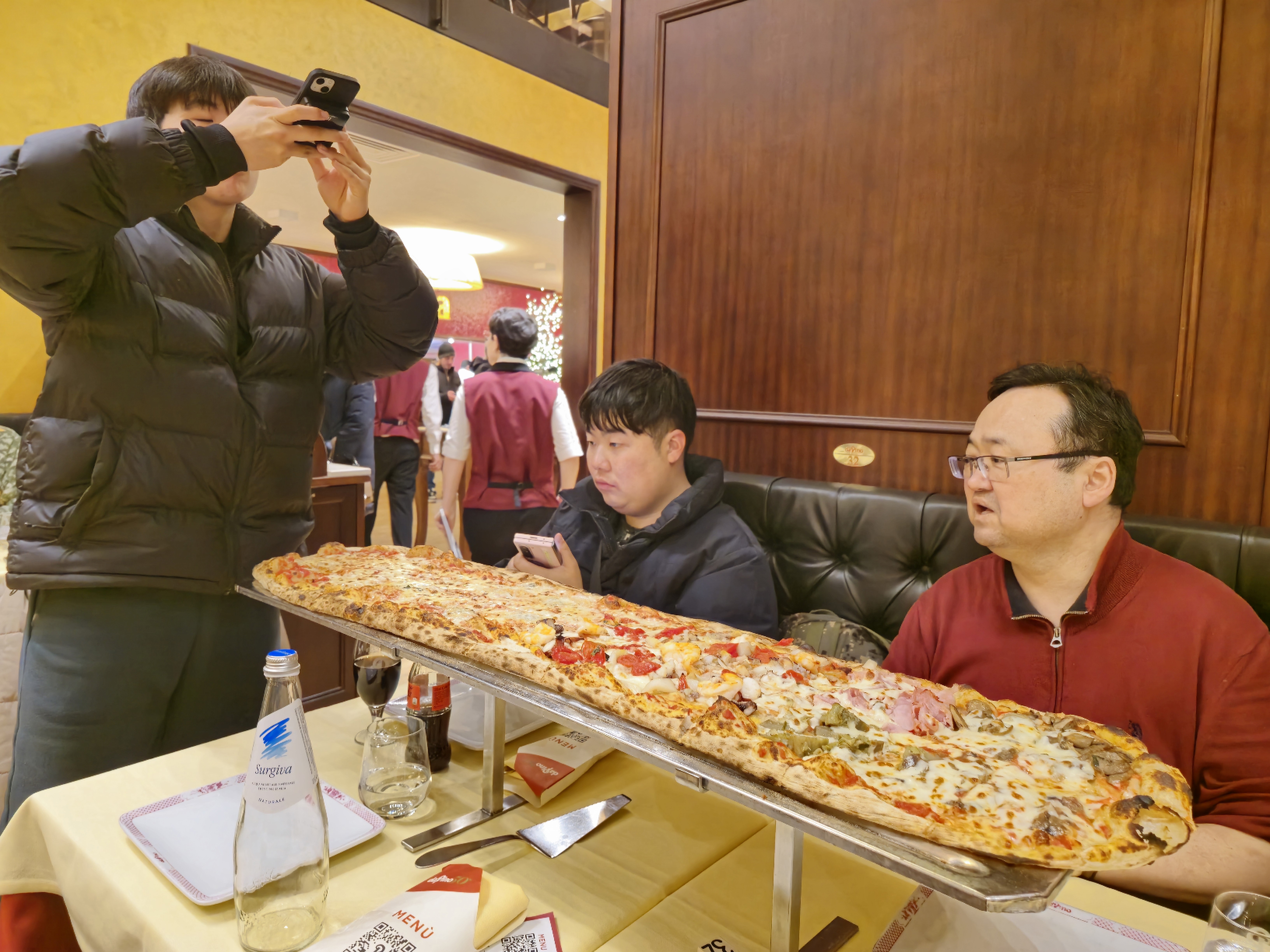 실은 이곳은 접때 이미 애들을 먹일 데라며 점지한 곳이라 예상대로 길이 1미터가 넘는 피자에 애들 눈이 휘둥그레졌다.