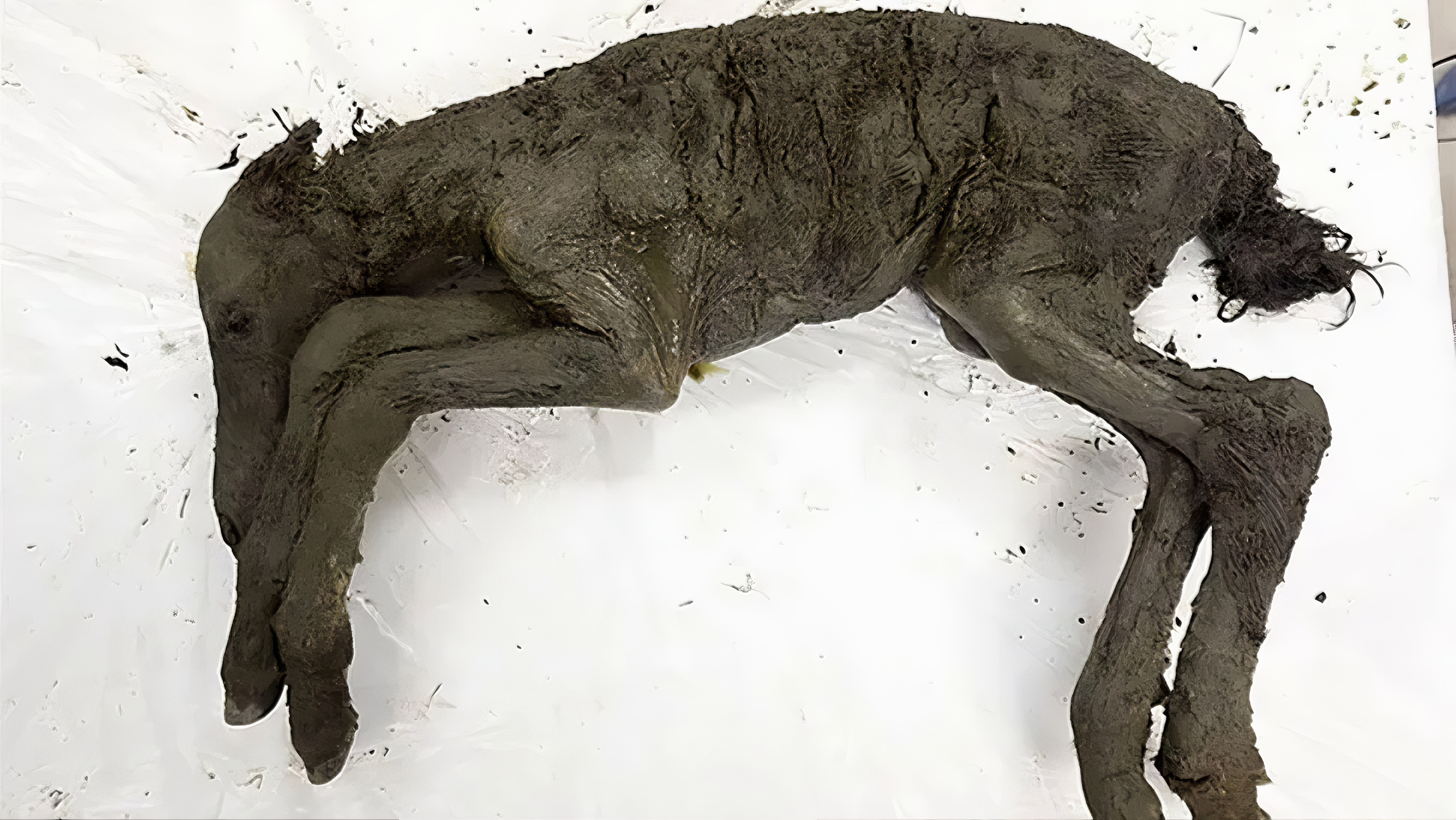 이 지역 영구 동토층permafrost, 즉 영구적으로 얼어붙은 땅에서 보존된 이 어린 말은 외부 손상 흔적을 보이지 않았고,